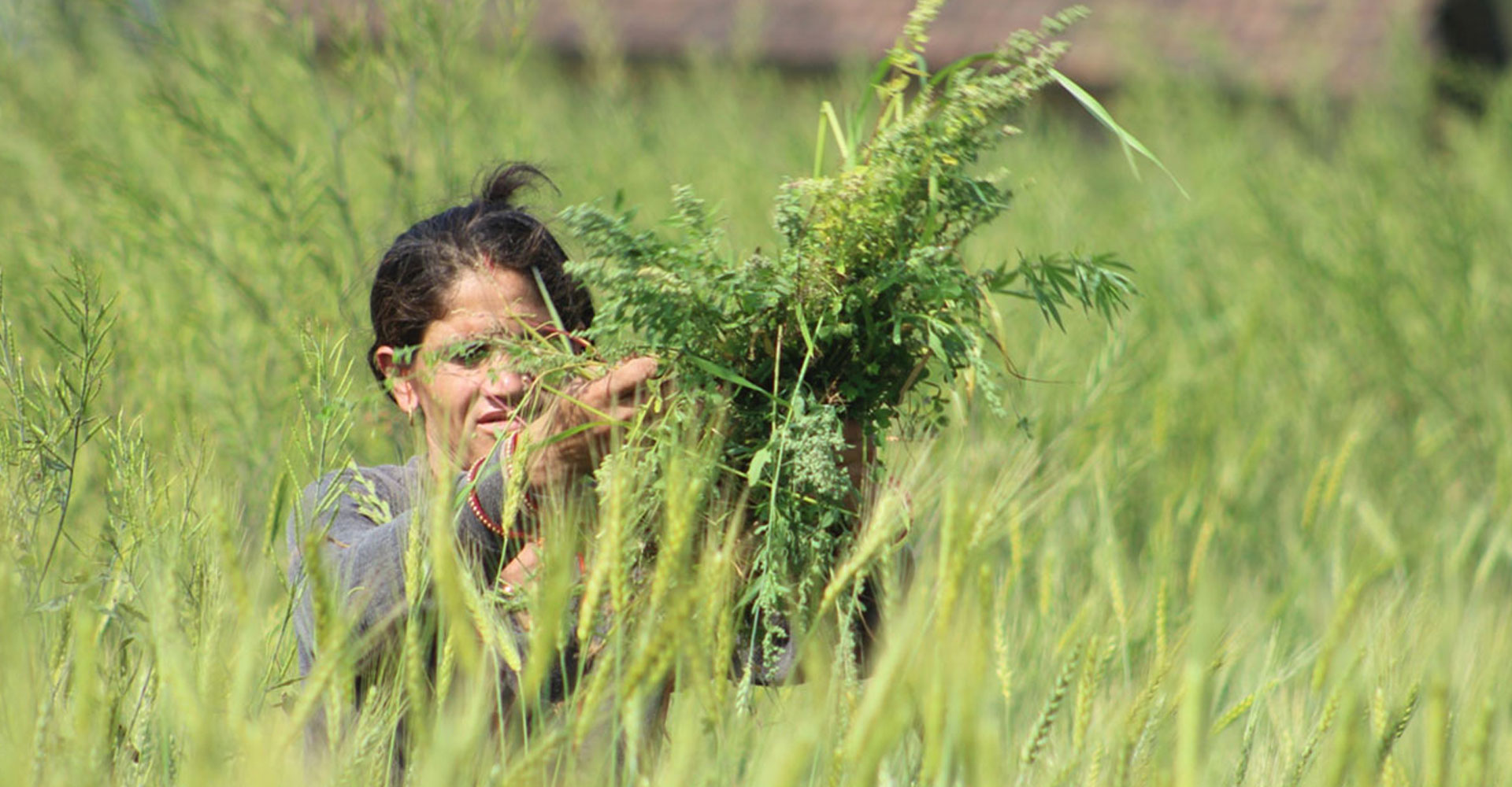 शुक्लाफाँटा नगरपालिका-२ रानीपुर गाउँका महिला गहुँबारीबाट पशुचौपायालाई खुवाउन घाँस निकाल्दै