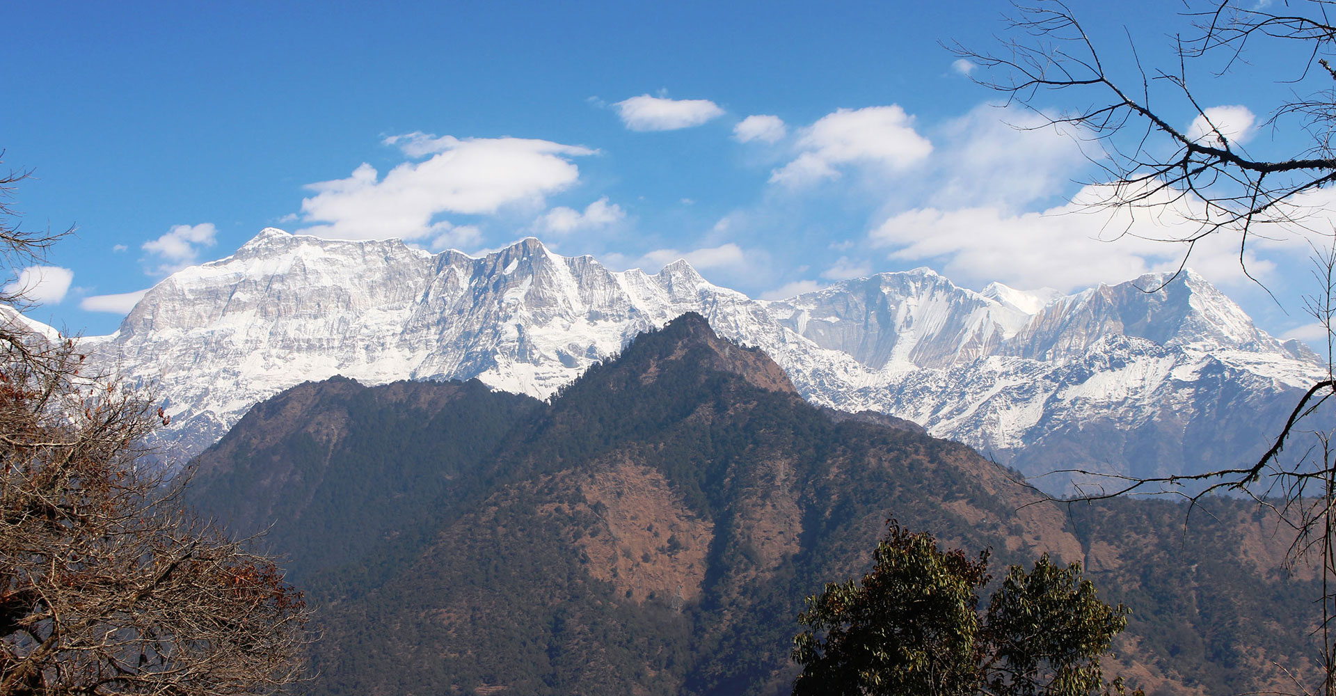 म्याग्दीको धवलागिरि गाउँपालिका– ३ मुनादेखि पर्यटकीयस्थल मालिकाधुरी जाने पदमार्गबाट देखिएको गुर्जा र चुरेन हिमालको हिम शृङ्खला