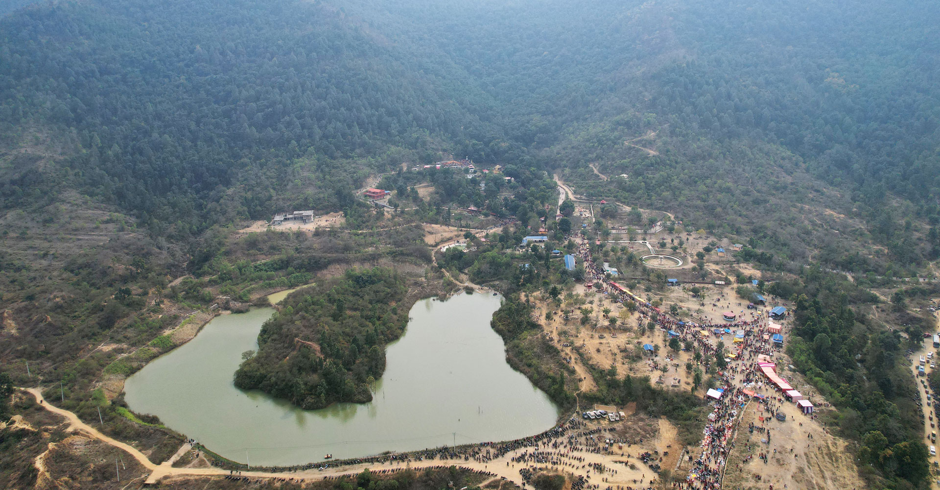 दाङको घोराही उपमहानगरपालिका-५ स्थित करिब ३३ हेक्टर क्षेत्रफलमा फैलिएको धार्मिक तथा पर्यटकीयस्थल पाण्डवेश्वर महादेव मन्दिर, धारपानी धाम । उक्त तस्बिर महाशिवरात्रिको दिन लिइएको हो