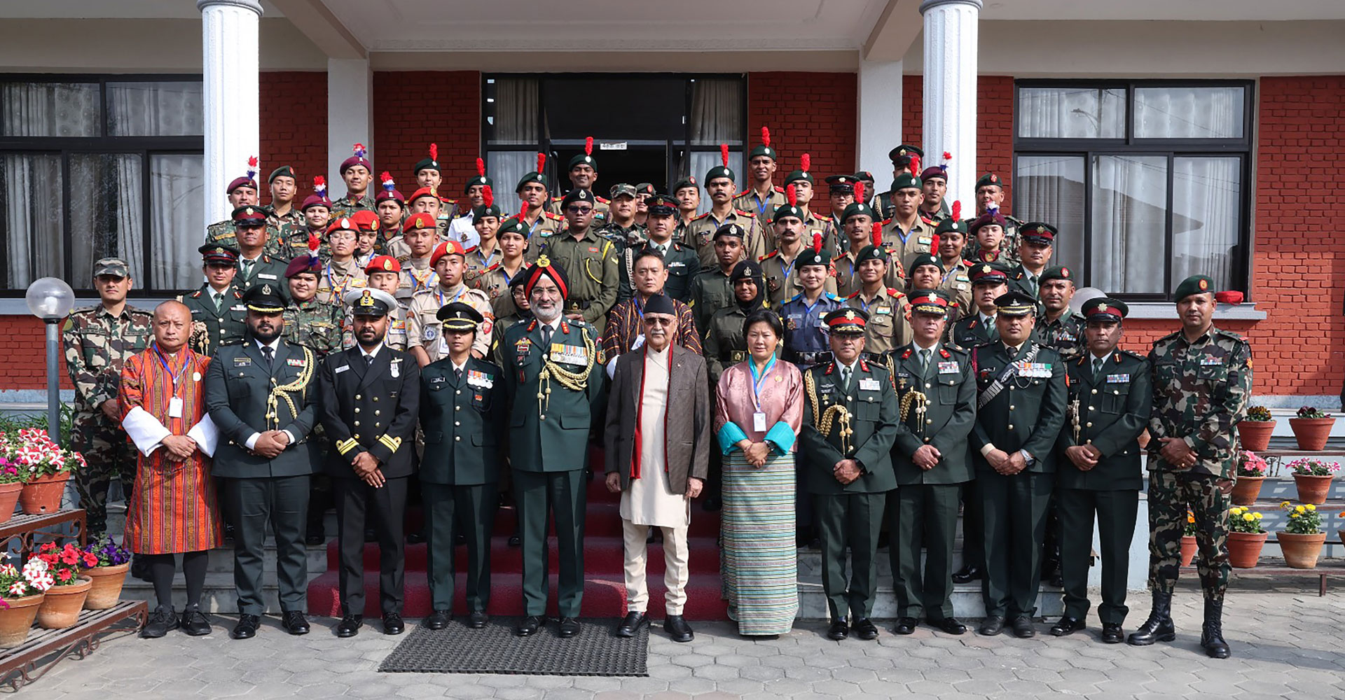 प्रधानमन्त्री केपी शर्मा ओलीसँग सोमबार प्रधानमन्त्री निवास, बालुवाटारमा महाशिवरात्री तथा नेपाली सेना स्थापनाको २६२औँ वार्षिकोत्सवका अवसरमा काठमाडौँमा आयोजना हुने युवा आदानप्रदान कार्यक्रम, २०२५ मा सहभागी हुन नेपाल आउनुभएका मित्रराष्ट्र भारत, भूटान र माल्दिभ्सका ‘राष्ट्रिय क्याडेट कोर’ (एनसिसी)का टोलीको शिष्टाचार भेटपश्चात् सामूहिक तस्बिरमा