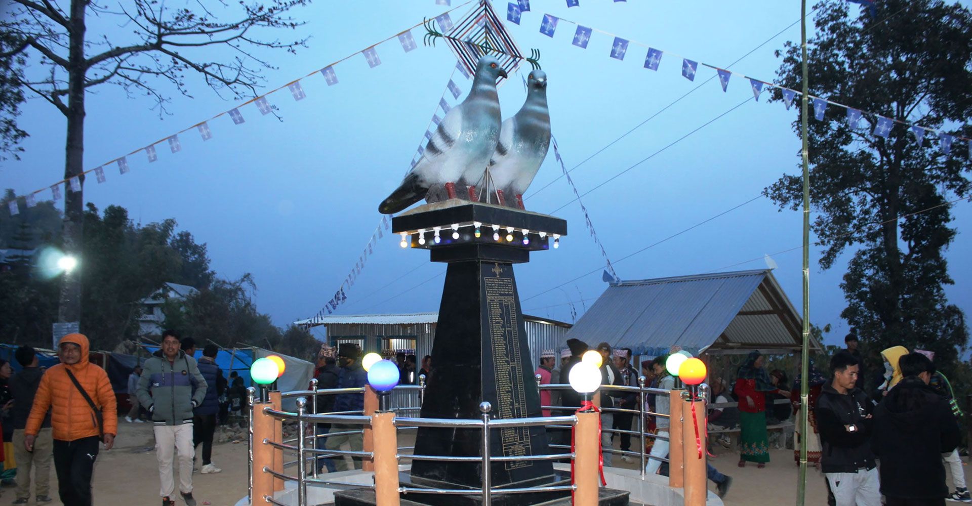 धनकुटाको छथर जोरगाटी गाउँपालिका-५ स्थित परेवादिन सिमलचोकमा निर्माण गरिएको जोडी परेवाको स्तम्भ