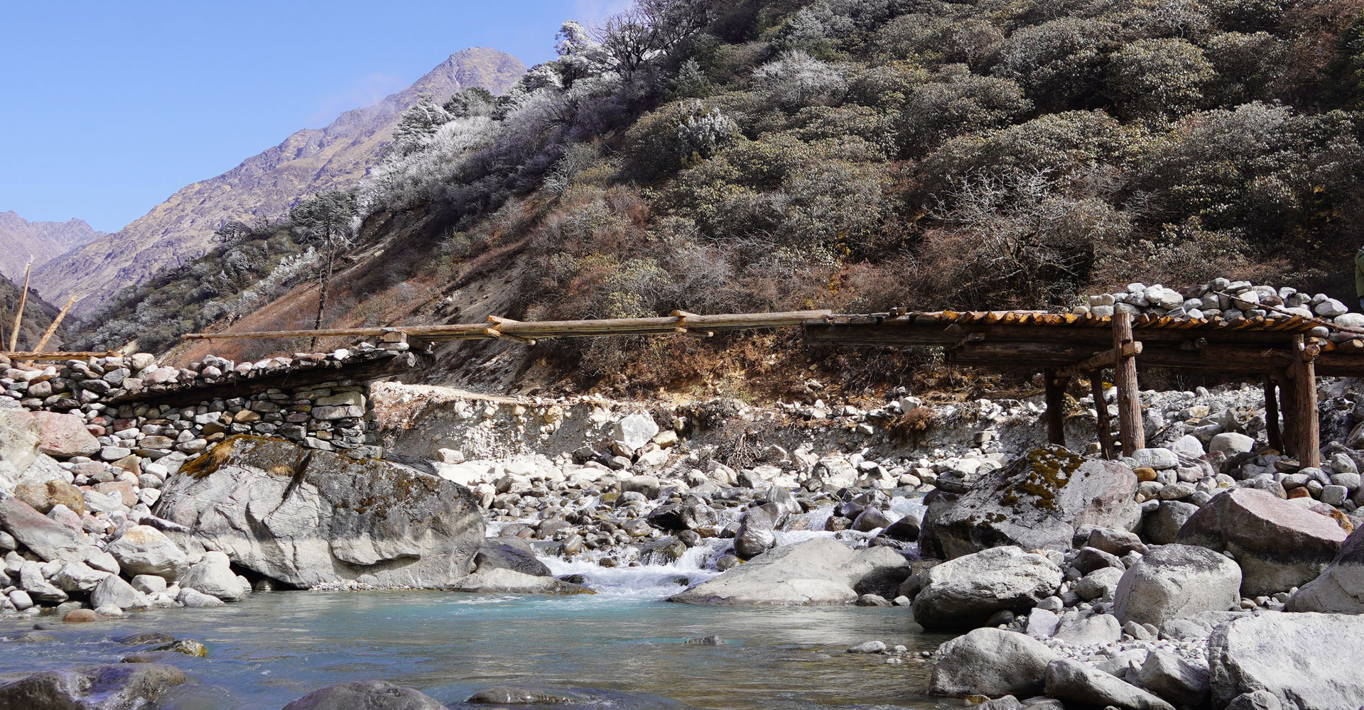 ताप्लेजुङको फक्ताङलुङ गाउँपालिका—७ ओलाङचुगोला क्षेत्रबाट सुरु हुने ‘ग्रेट हिमालयन ट्रेल’ अन्तर्गत तमोर नदी माथी रहेको काठेपुल