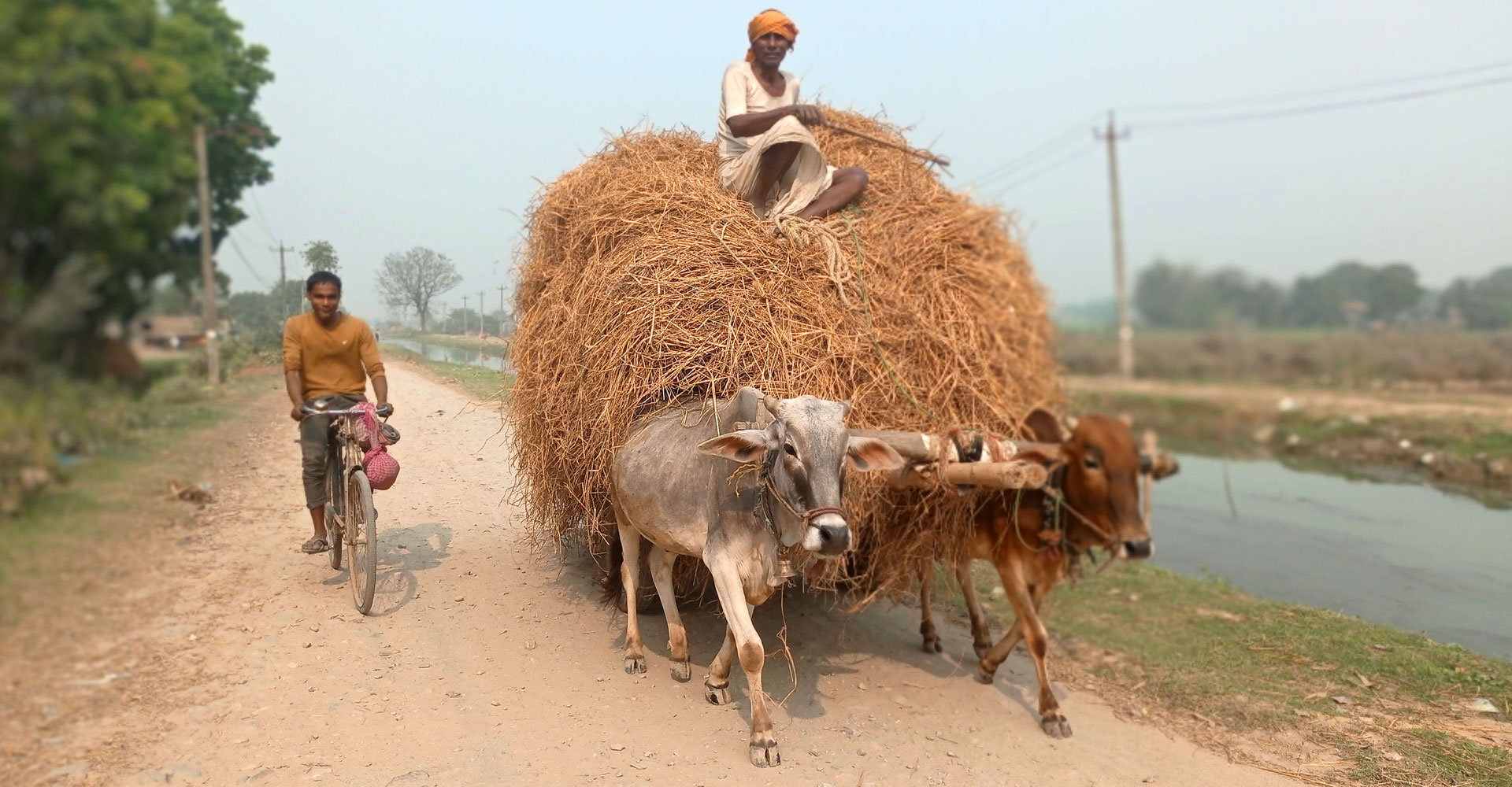 सुनसरीको इनरुवा नगरपालिका-१ मा गोरुगाडामा पराल ओसार्दै किसान । ट्याक्टरको बढ्दो प्रयोगसँगै पछिल्लो समय गोरुगाडाको प्रयोग न्युन हुँदै गएको छ