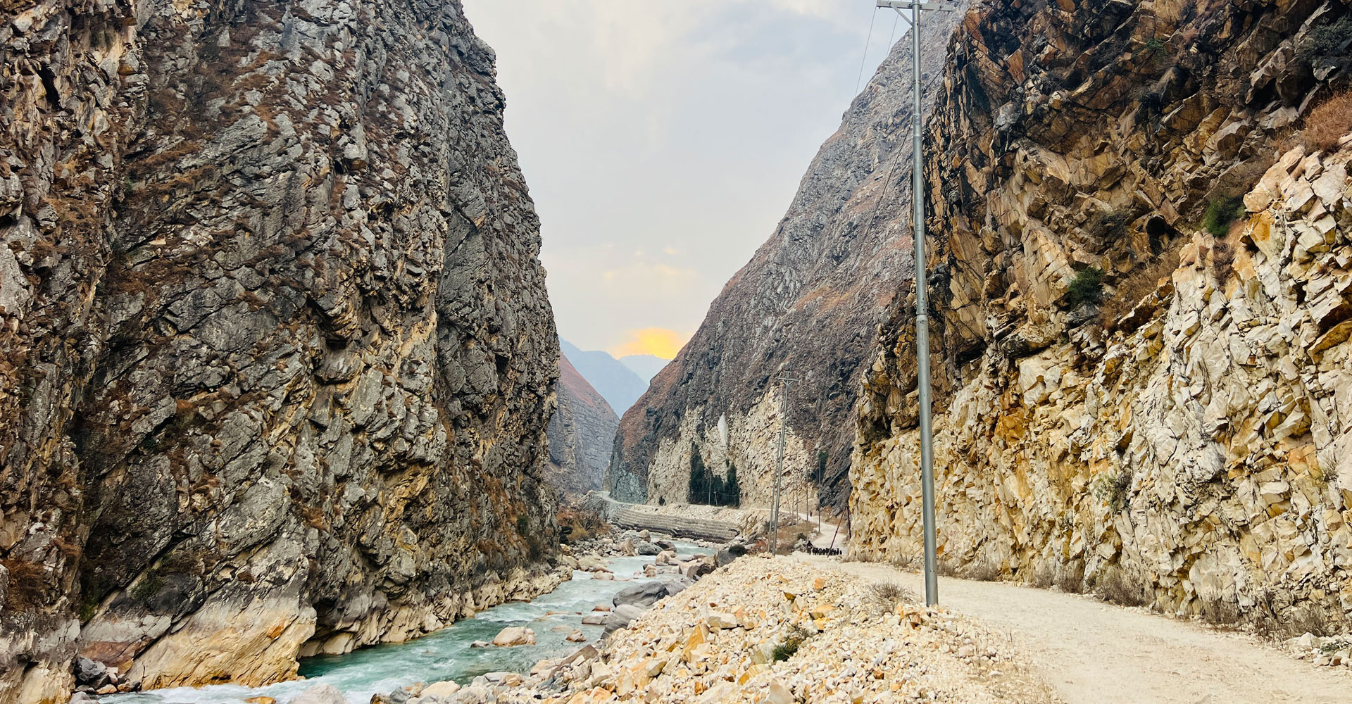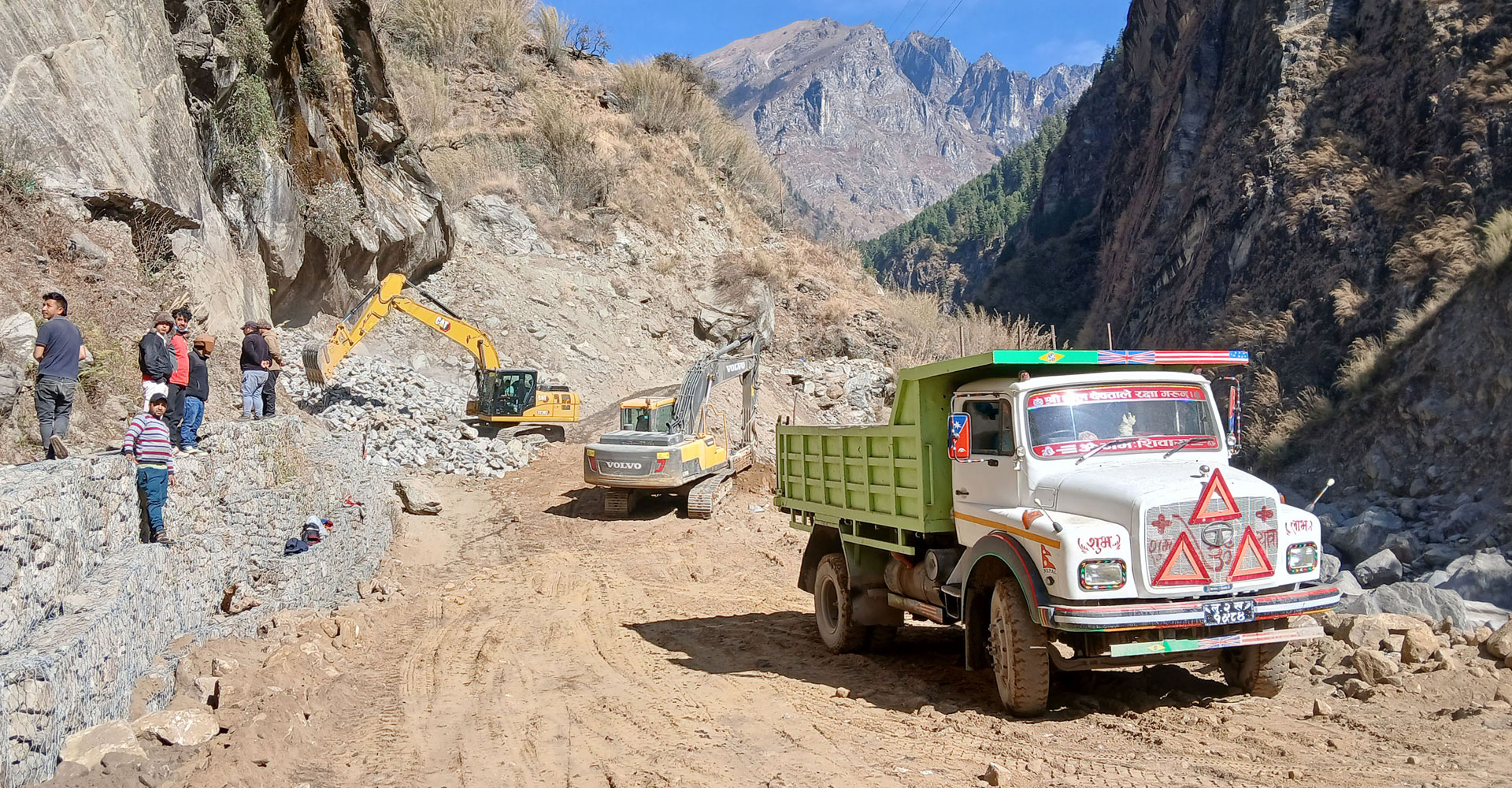 भेरी करिडोर अन्तर्गत डोल्पाको त्रिपुरासुन्दरी नगरपालिका–५ स्थित चट्टान कटान गरी निर्माण गरिएको सडक । सोही सडकमा हालै चार अर्ब २० करोडको बजेट अर्थ मन्त्रालयबाट स्रोत सुनिश्चित गरेर स्तरोन्नती काम हुने भएको छ