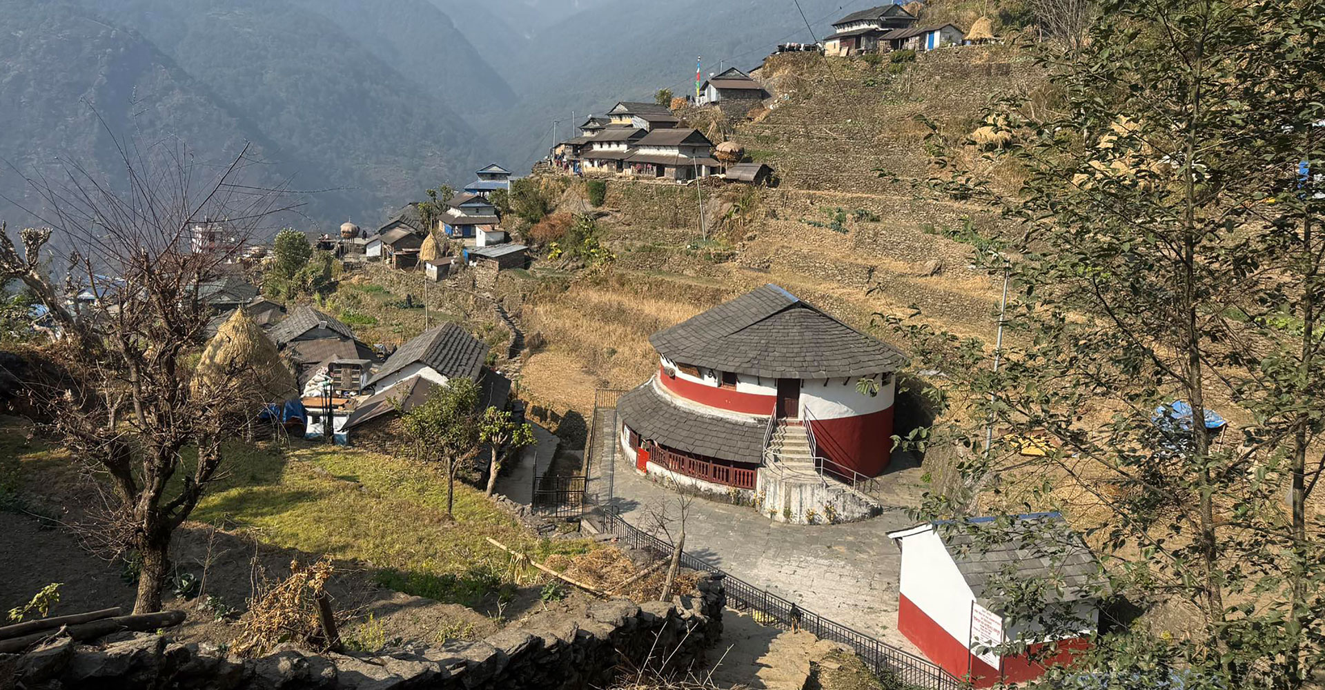 लमजुङ क्वहोलासोथार गाउँपालिका–४ पर्यटकीय गाउँ भुजुङमा रहेको परम्परागत घुमाउने घर । गाउँघरबाट हराउँदै गएको मौलिक परम्परागत घुमाउने घर यहाँ आउने पर्यटकलाई आकर्षित गर्ने गरेको छ