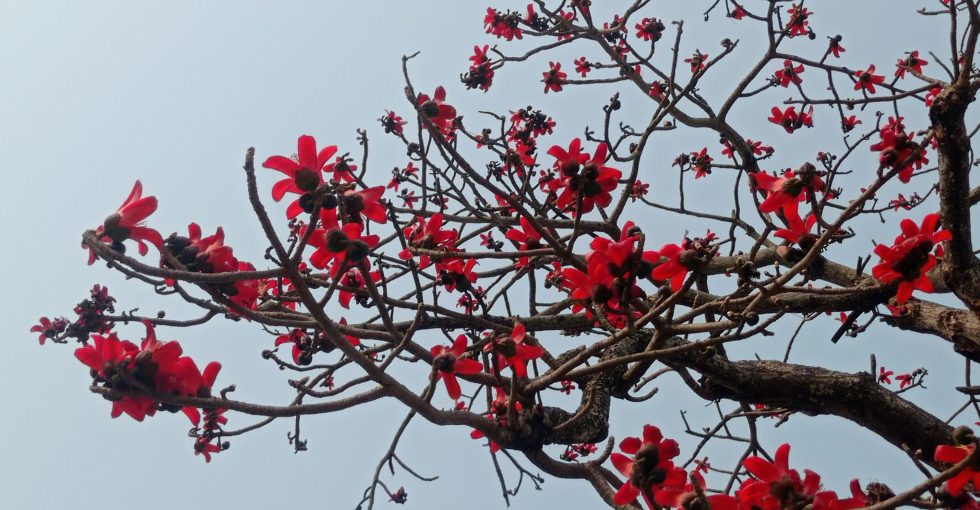 सुनसरीको इनरुवा नगरपालिका-४ स्थित पूर्वपश्चिम राजमार्गको किनारमा ढकमक्क फुलेको सिमलकाे फूल