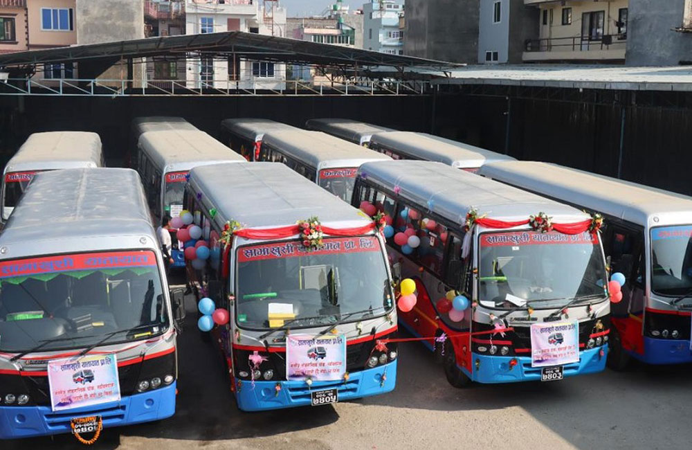 थप पढ्नुहोस्५ कात्तिक, काठमाडौं । सामाखुसी यातायात प्रा.लि.ले रु सात करोडको लागतमा १५ वटा बस सञ्चालनमा ल्याएको छ। विसं २०५७ मा
