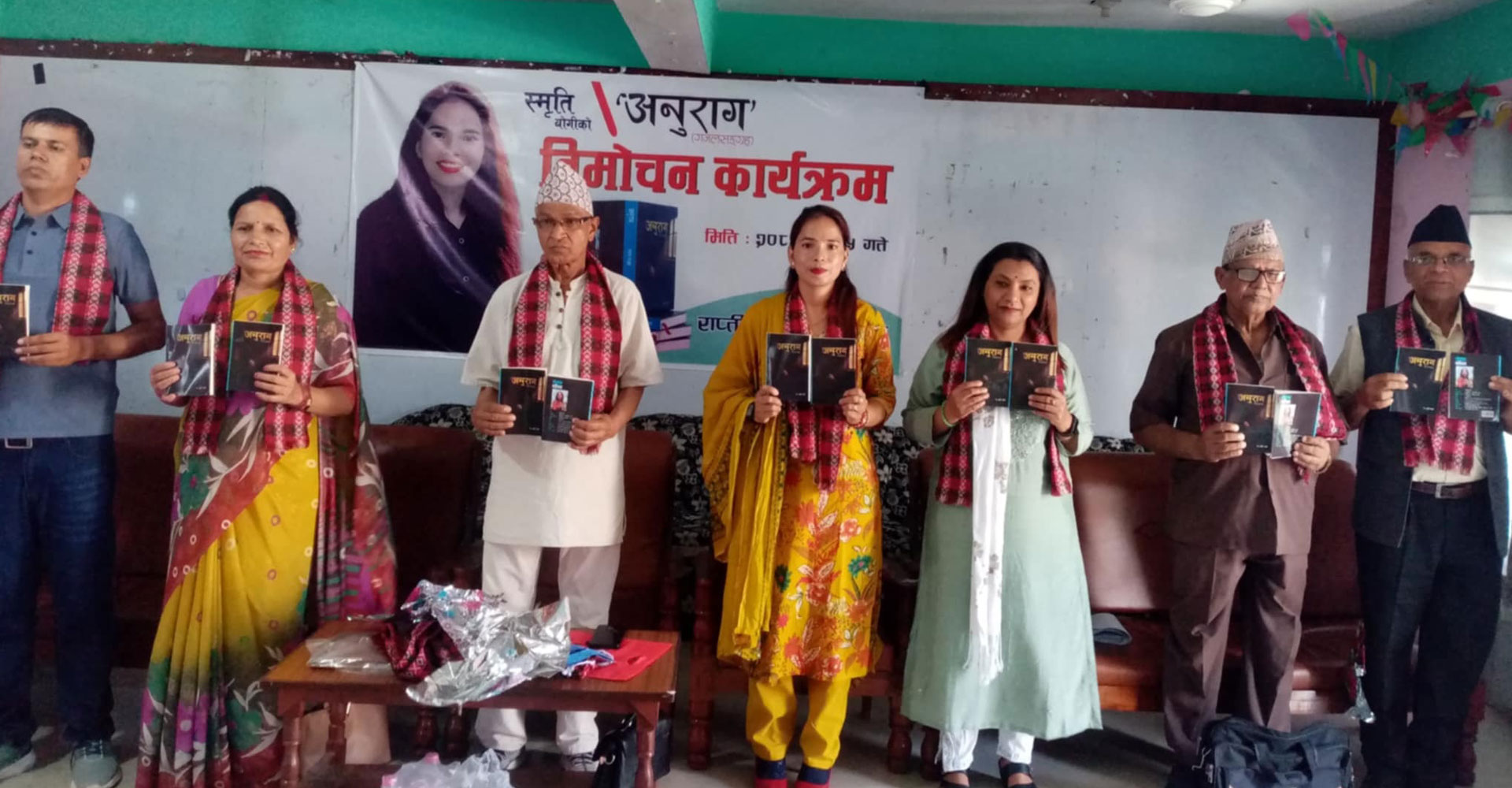 थप पढ्नुहोस्घोराही (दाङ), १६ जेठः साहित्यकार स्मृति योगीको ‘अनुराग’ गजल-सङ्ग्रहको आज घोराहीमा एक कार्यक्रमबीच विमोचन गरिएको छ । राप्ती साहित्य परिषद्