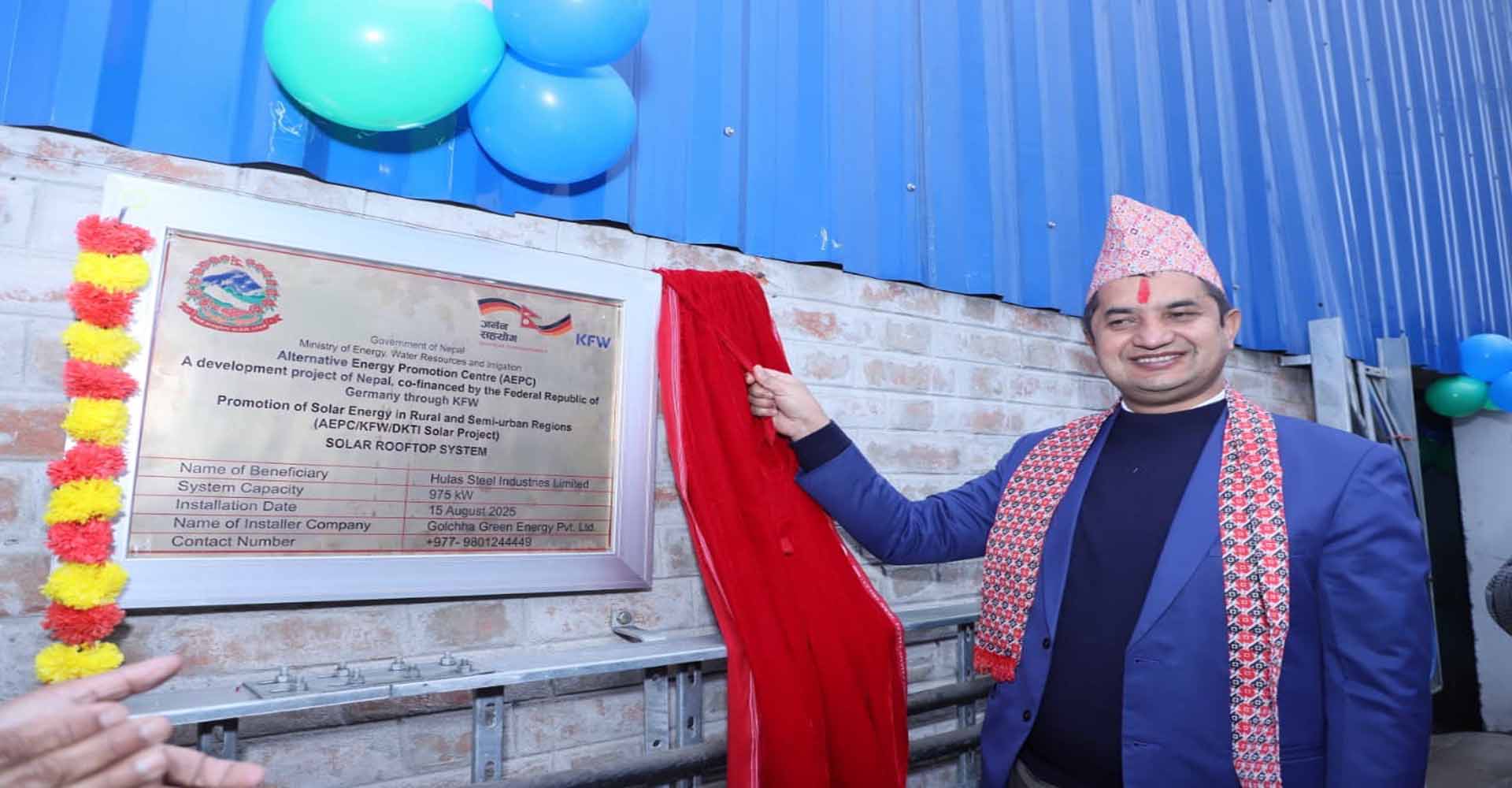 थप पढ्नुहोस्काठमाडौं, पुस १७ गते । नेपालकै पहिलो ग्रीन स्टिल तथा रूफिङ कम्पनी हुलास स्टिल इन्डस्ट्रिज लिमिटेडले बारा–सिमरास्थित आफ्नै कारखानामा सौर्य