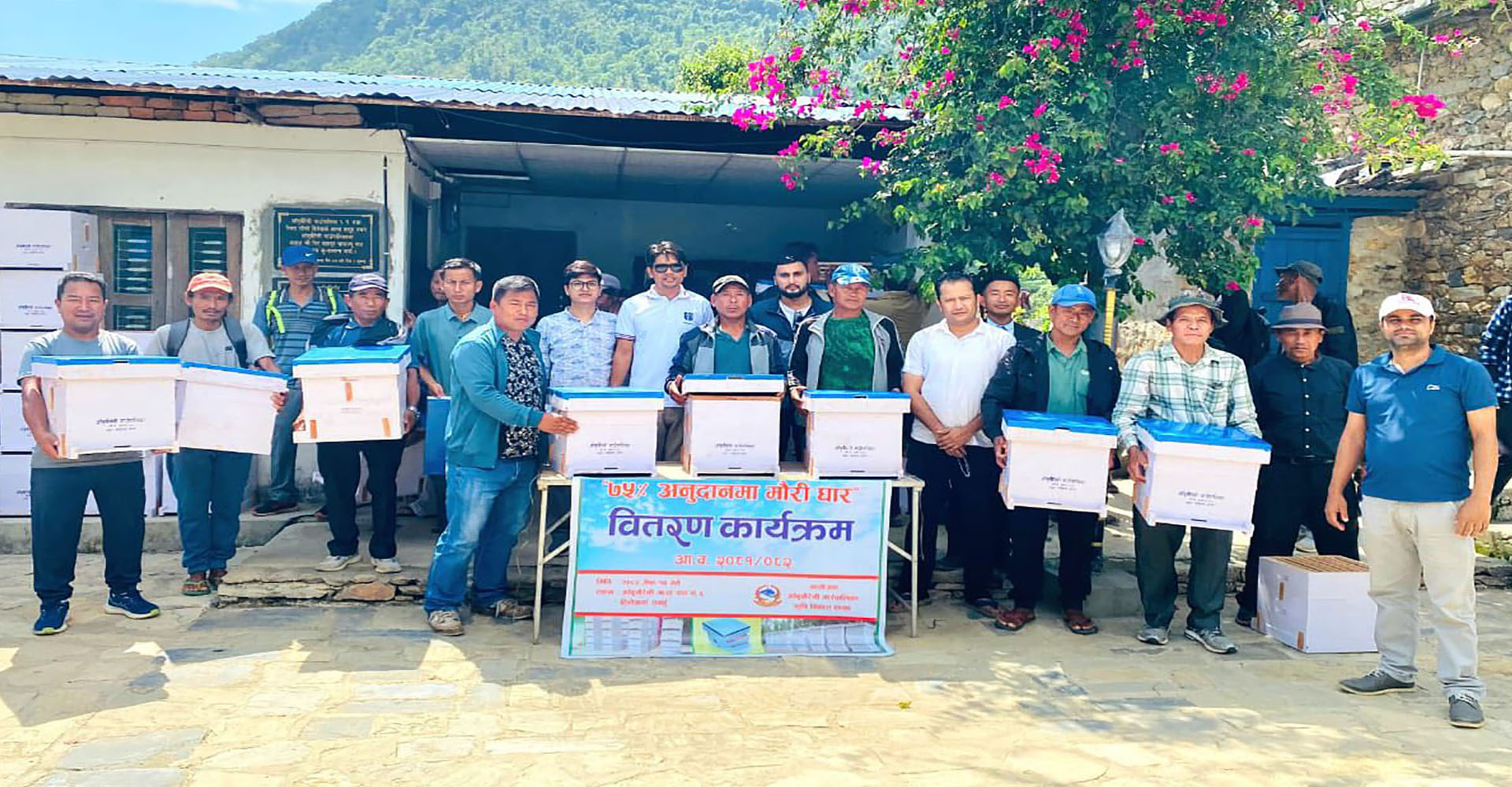 दमौली (तनहुँ), १५ जेठः जिल्लाको आँबुखैरेनी गाउँपालिकाका कृषकलाई सीपसँगै मौरीघार वितरण गरिएको छ । आँबुखैरेनी-६ हिलेखर्कका कृषकलाई मौरीपालनसम्बन्धी तालिमसँगै ७५