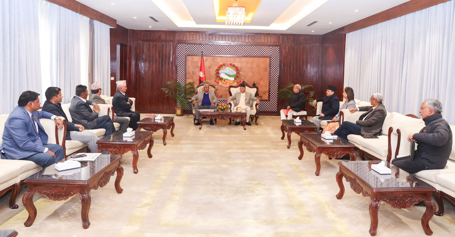 थप पढ्नुहोस्काठमाडौँ, ३ फागुनः सत्तारुढ राजनीतिक दल र सरकार समर्थक दलका शीर्ष शीर्ष नेतासहितको बैठक प्रधानमन्त्री निवासमा सुरु भएको छ ।