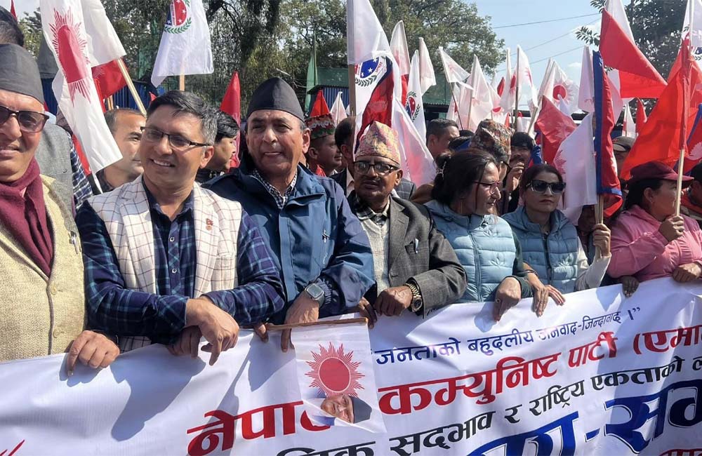 थप पढ्नुहोस्काठमाडौँ, ७ मङ्सिरः नेपाल कम्युनिष्ट पार्टी (एमाले) को आज काठमाडौँमा हुन लागेको जागरणसभाको र्याली भद्रकालीबाट प्रारम्भ भएको छ । भद्रकालीबाट