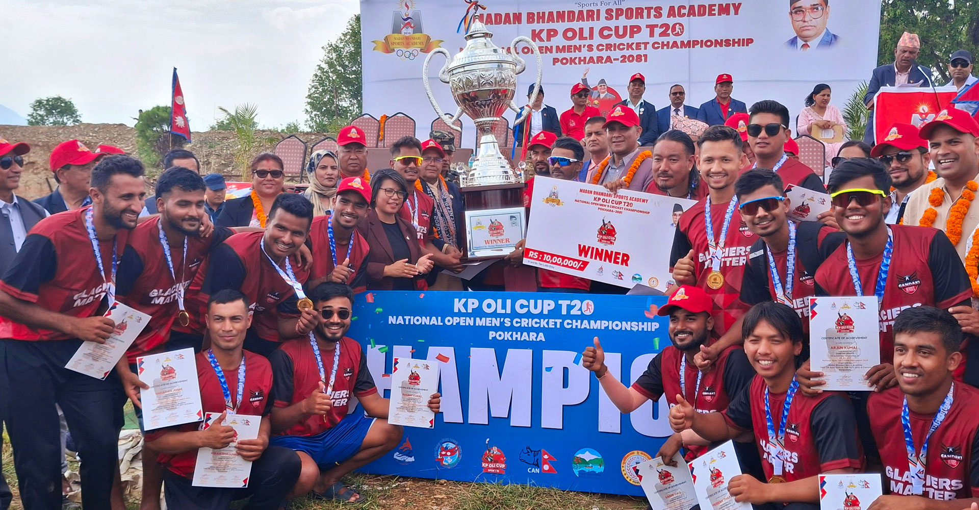 थप पढ्नुहोस्कास्की, ५ वैशाख : पोखरामा सञ्चालन भएको दोस्रो संस्करणको ‘केपी ओली कप’ टी–२० राष्ट्रिय खुला पुरुष क्रिकेट प्रतियोगिताको उपाधि गण्डकी