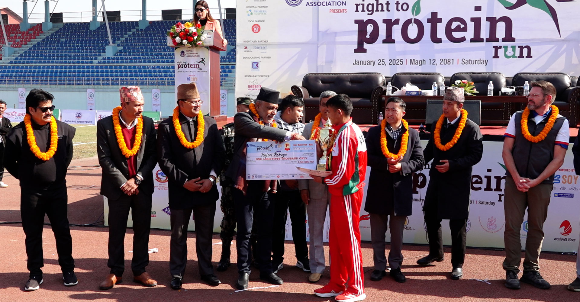 थप पढ्नुहोस्काठमाडौँ, १२ माघ : मुलुककै सबैभन्दा धेरै खेलाडीको सहभागिता रहेको चौथो संस्करणको ‘राइट टु प्रोटिन’ दौड प्रतियोगिता सम्पन्न भएको छ