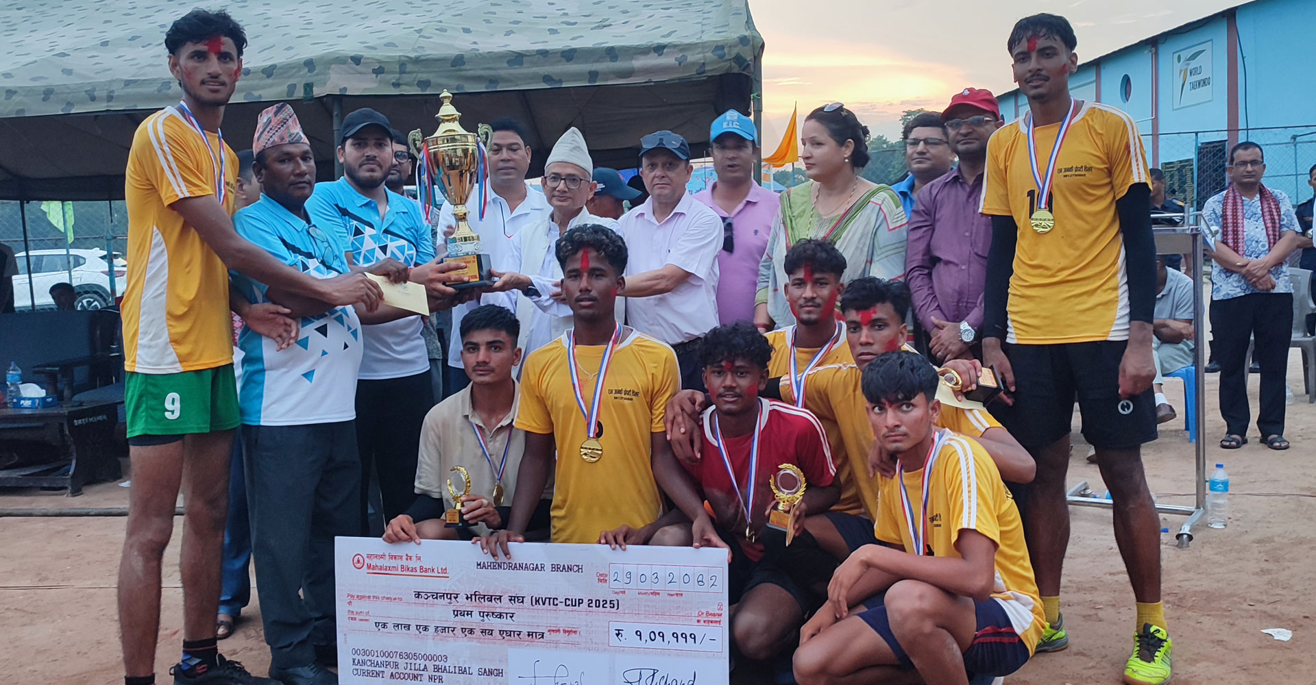 थप पढ्नुहोस्दोधारा चाँदनी (कञ्चनपुर), ३० असारः खुला पुरुष भलिबल प्रतियोगिताको उपाधी रामजानकी टोलीले जितेको छ । महेन्द्रनगरस्थित कभर्डहलमा सम्पन्न उक्त प्रतियोगितामा आयोजक