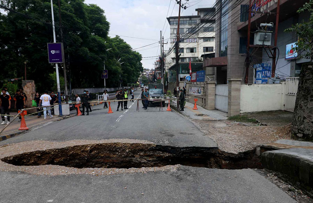 थप पढ्नुहोस्२५ साउन, काठमाडौं । काठमाडौं महानगरपालिकाको नजिकको सडक भ्वाङ परेको छ । सडक भासिँदा रातिदेखि आवागमन पनि रोकिएको छ ।