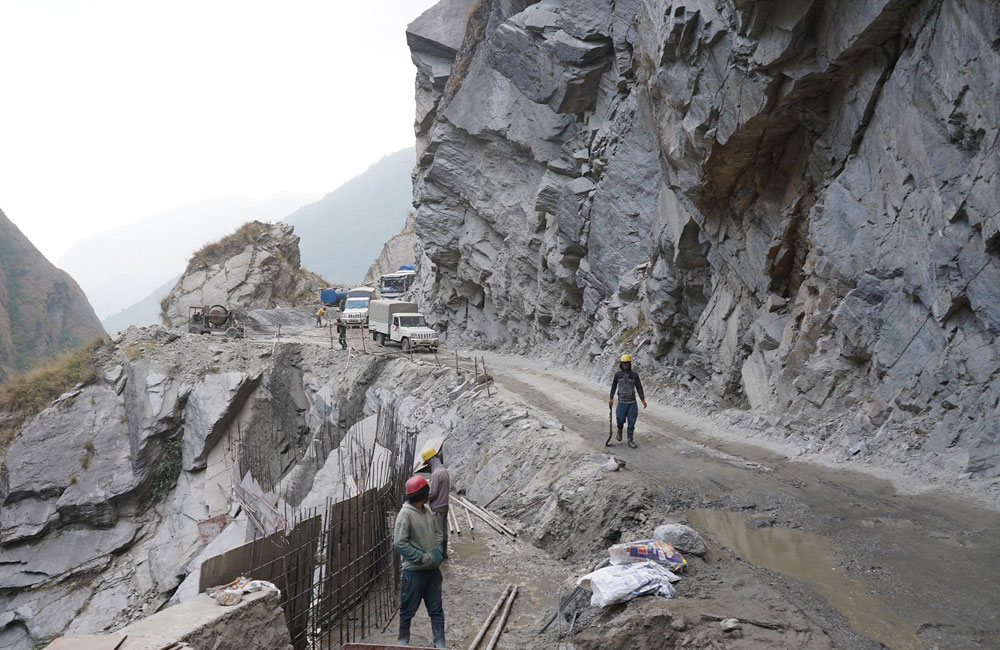 कालीगण्डकी करिडोर : काभ्रेभिरमा ‘रक एंकरिङ’ गरेर सडक विस्तार