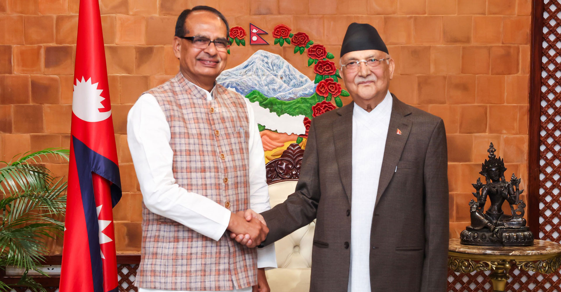 थप पढ्नुहोस्काठमाडौँ, २७ चैतः प्रधानमन्त्री केपी शर्मा ओलीसँग नेपाल भ्रमणमा रहनुभएका भारतका कृषि तथा किसान कल्याणमन्त्री शिवराजसिंह चौहानले आज शिष्टाचार भेट