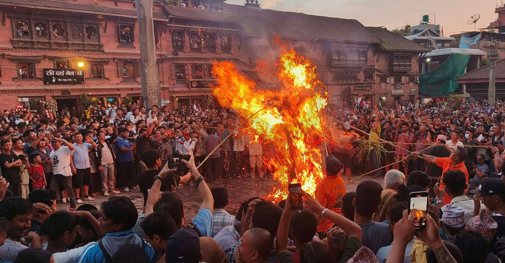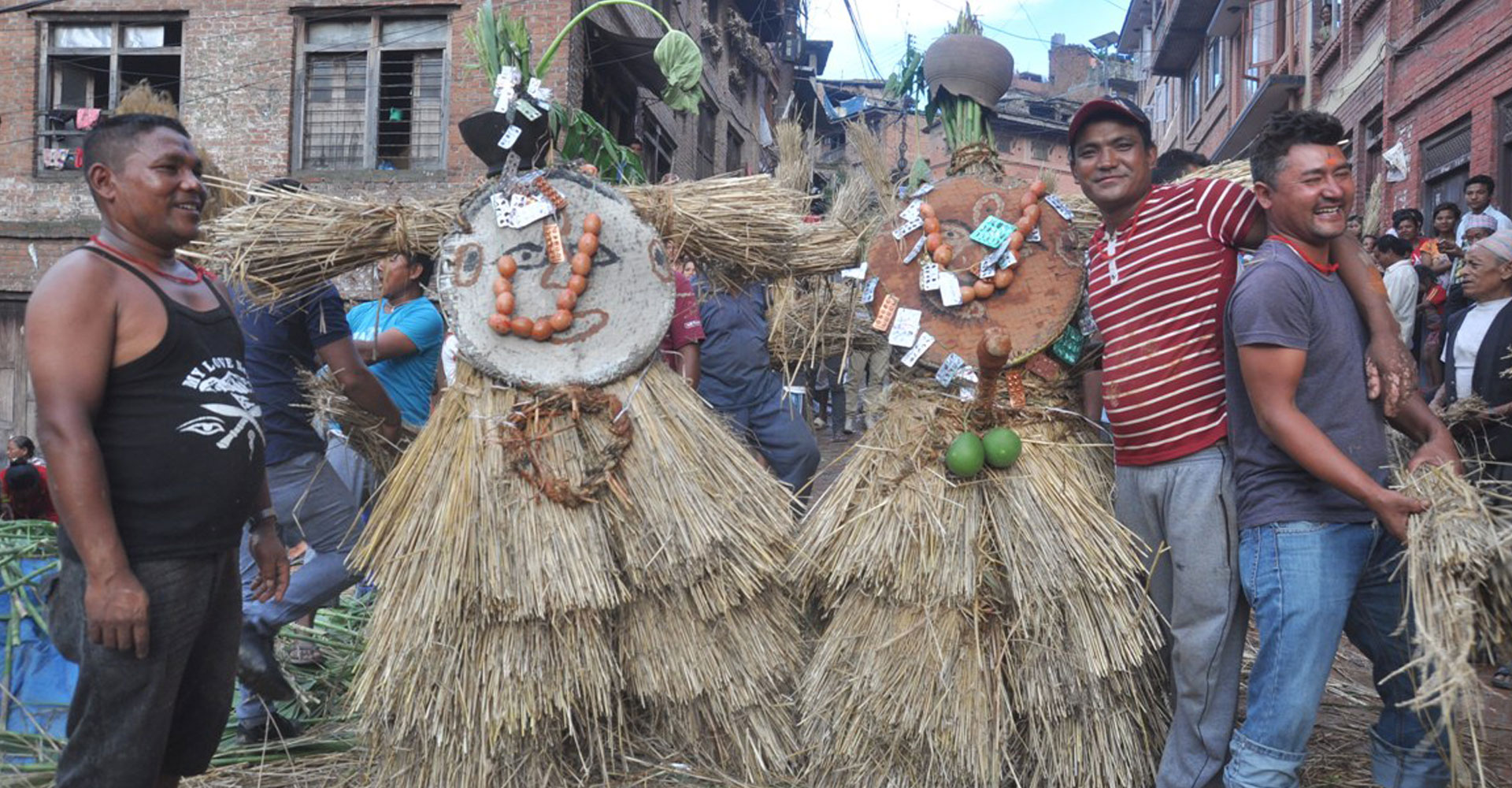 भक्तपुरमा पृथक गठामङ्गल पर्व, आज साँझ राक्षसको प्रतीक घण्टाकर्ण टोलटोलमा घुमाएर मारियो