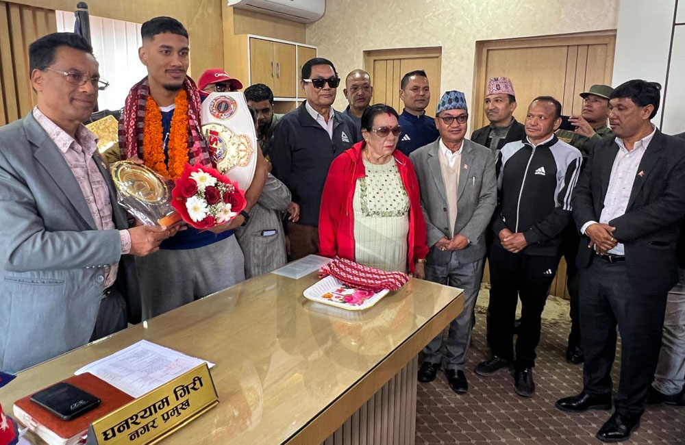 विश्व विजेता किक बक्सर ‘हिमचितुवा’ अविरल घिमिरेलाई चन्द्रागिरि नगरपालिकाद्वारा अभिनन्दन