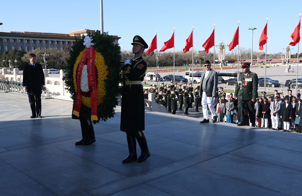 प्रधानमन्त्री ओलीद्वारा चिनियाँ जनक्रान्तिका सहिदका स्मारकमा पुष्पहार अर्पण