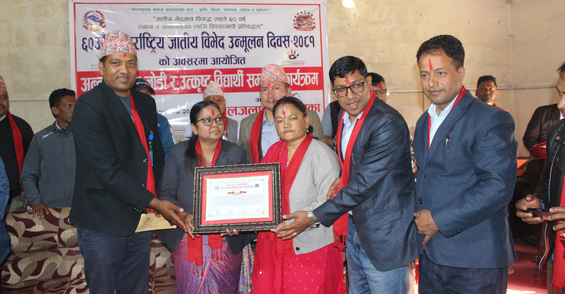 थप पढ्नुहोस्म्याग्दी (बेनी) ८ चैतः पर्वतको जलजला गाउँपालिकाले अन्तरजातीय विवाह गर्ने दम्पतीलाई सम्मान गरेको छ । ६०औँ अन्तरराष्ट्रिय जातीय विभेद उन्मूलन