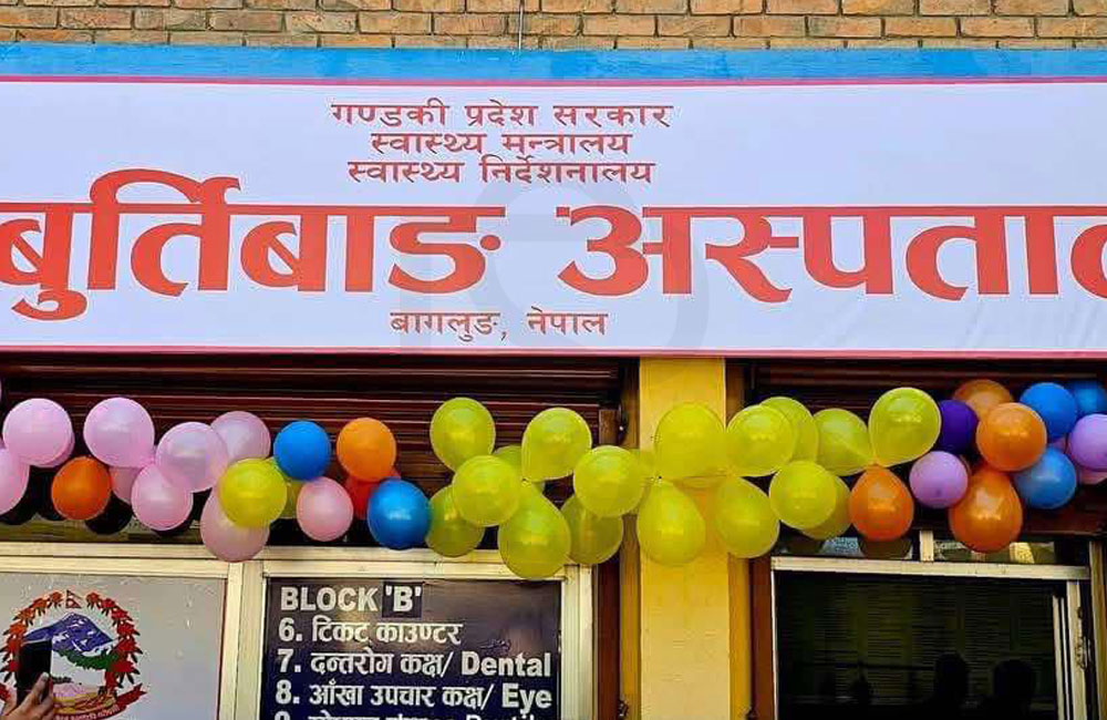 थप पढ्नुहोस्गलकोट (बागलुङ), १४ पुुसः ढोरपाटन नगरपालिका–१ बुर्तिवाङमा शुक्रबारदेखि ५० शय्याको अस्पताल सञ्चालन भएको छ । यसबाट निसीखोला, तमानखोला र बडिगाड