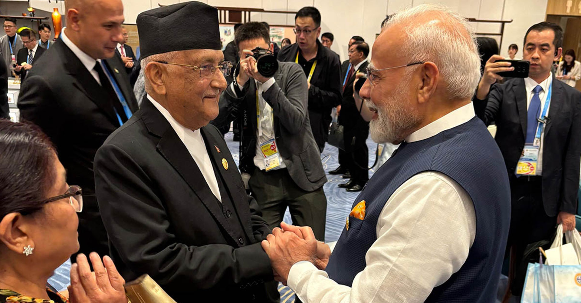 थप पढ्नुहोस्काठमाडौँ, भदौ १५ : चीन भ्रमणमा रहनुभएका प्रधानमन्त्री केपी शर्मा ओलीले थियानचिनमा भारतका प्रधानमन्त्री नरेन्द्र मोदीसँग भेटवार्ता गर्नुभएको छ। प्रधानमन्त्री
