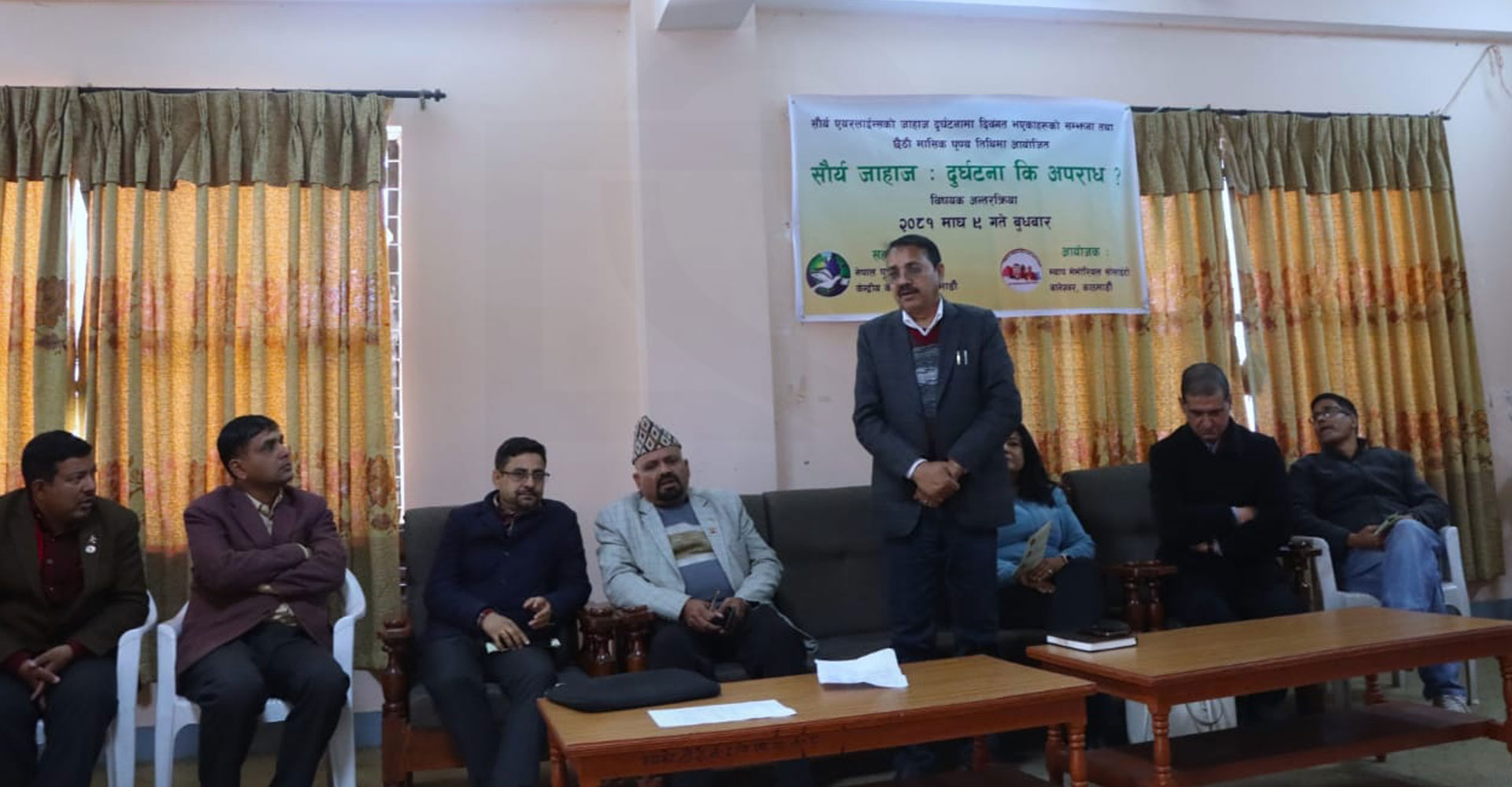 थप पढ्नुहोस्काठमाडौँ, ९ माघः सौर्य जहाज दुर्घटनाका पीडित परिवारले न्याय नपाएको गुनासो गरेका छन् । घटनाको छैटौँ मासिकको पुण्यतिथि (छ महिना)