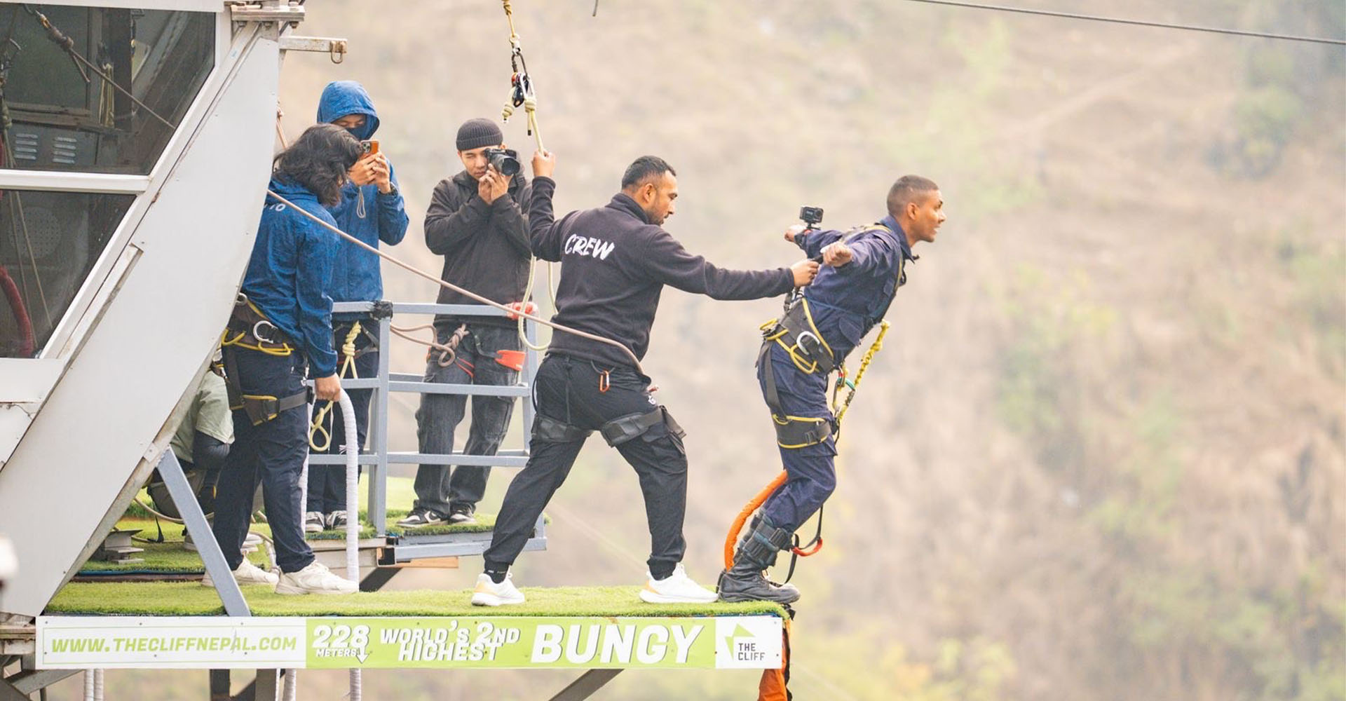द क्लिफमा प्रहरीको ‘कमाण्डो’का प्रशिक्षार्थीको बञ्जी जम्प