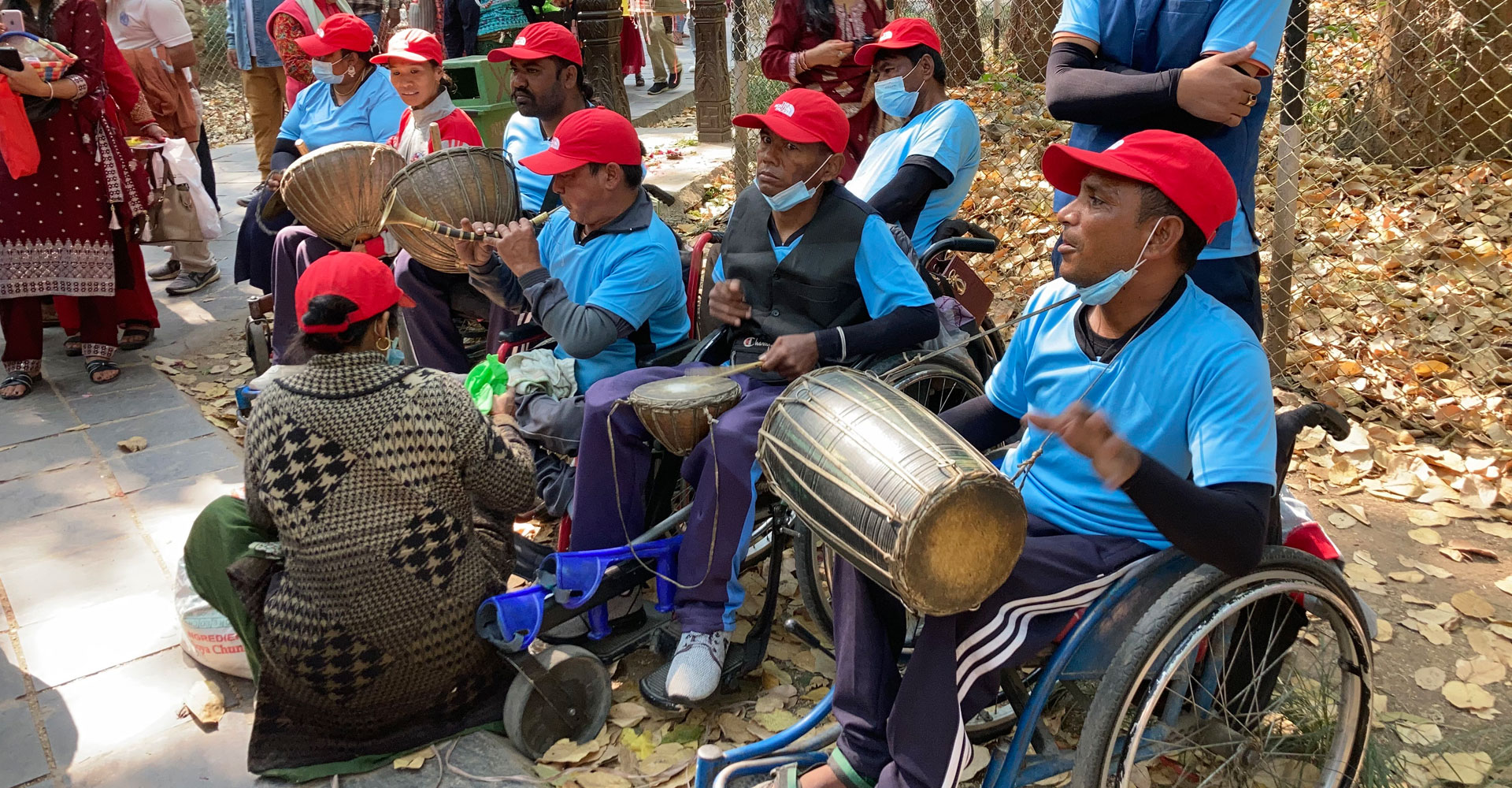 महिला समूहलाई नौमती बाजा बजाउन भ्याइनभ्याई