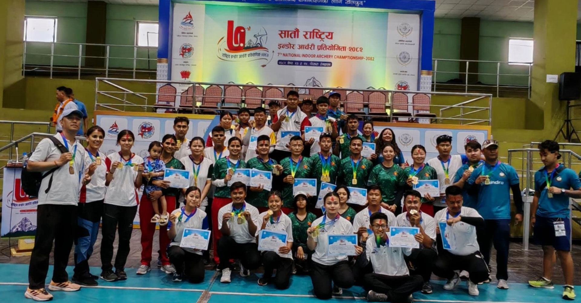 कास्की, २५ जेठः पोखरा रङ्गशालामा सञ्चालन भएको ‘इन्डोर राष्ट्रिय आर्चरी’ च्याम्पियनसिपमा ‘रिकर्व इन्डिभिजुअल’ तर्फ नेपाल पुलिसका तिलक पुनले पुरुषतर्फ स्वर्ण पदक
