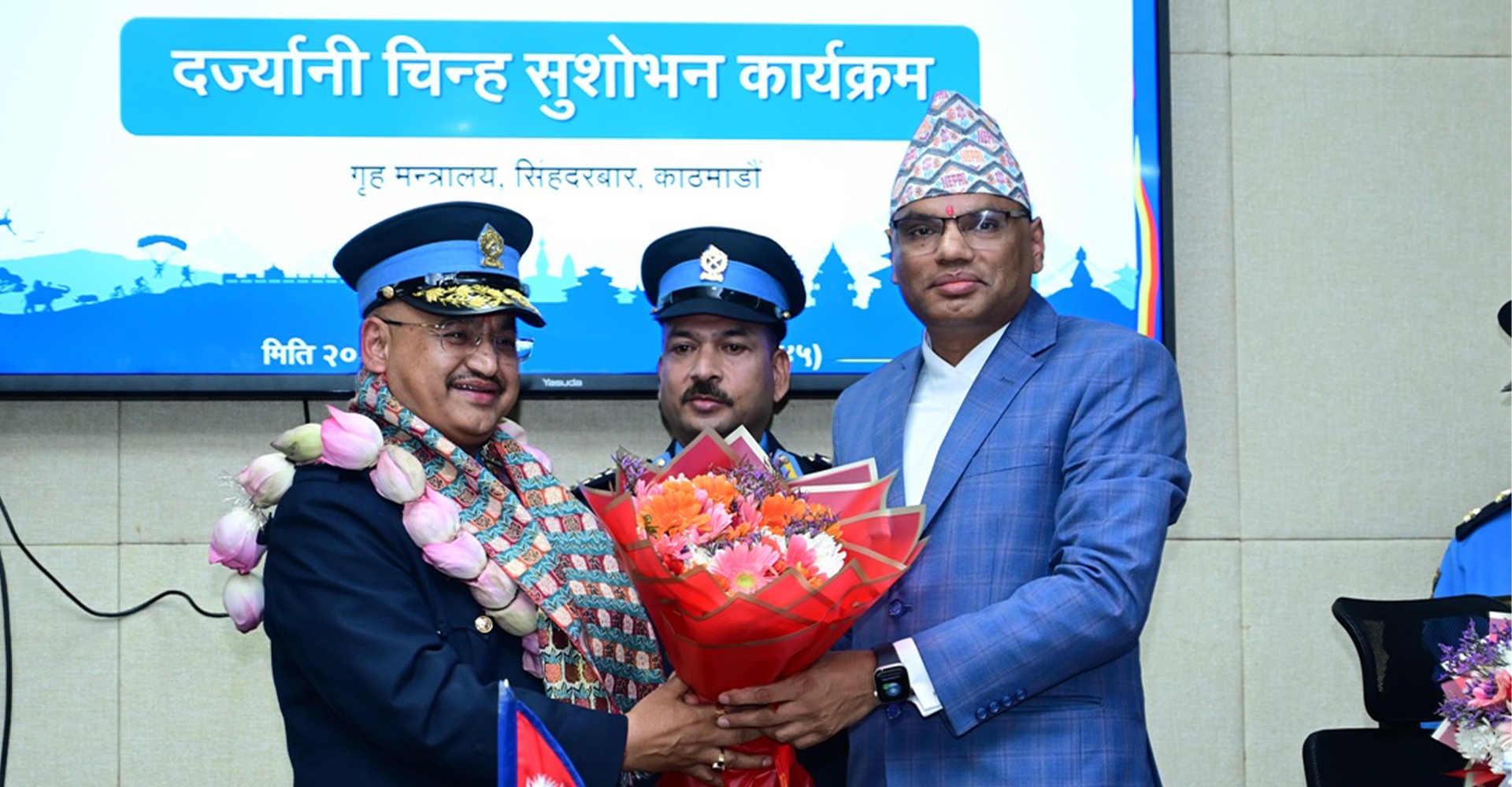 काठमाडौँ, ११ जेठः प्रहरी महानिरीक्षक दीपक थापाले सगरमाथाको सफल आरोहण गर्नुभएकी प्रहरी नायब निरीक्षक कुञ्जाङ छोपेल शेर्पालाई दज्र्यानी चिह्न प्रदान