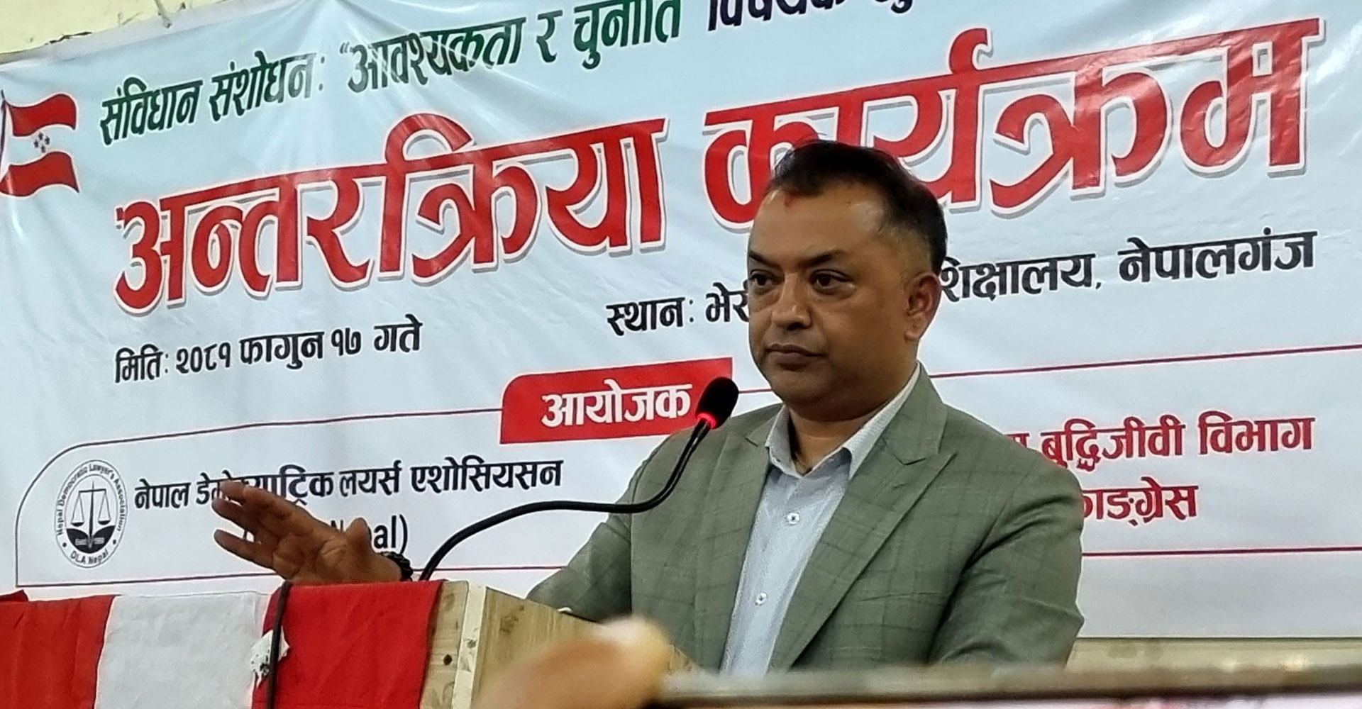 थप पढ्नुहोस्खजुरा (बाँके), १७ फागुनः नेपाली कांग्रेसका महामन्त्री गगन थापाले वर्तमान सरकार संविधान कार्यान्वयनमा केन्द्रित रहेको बताउनुभएको छ । पेसागत तथा