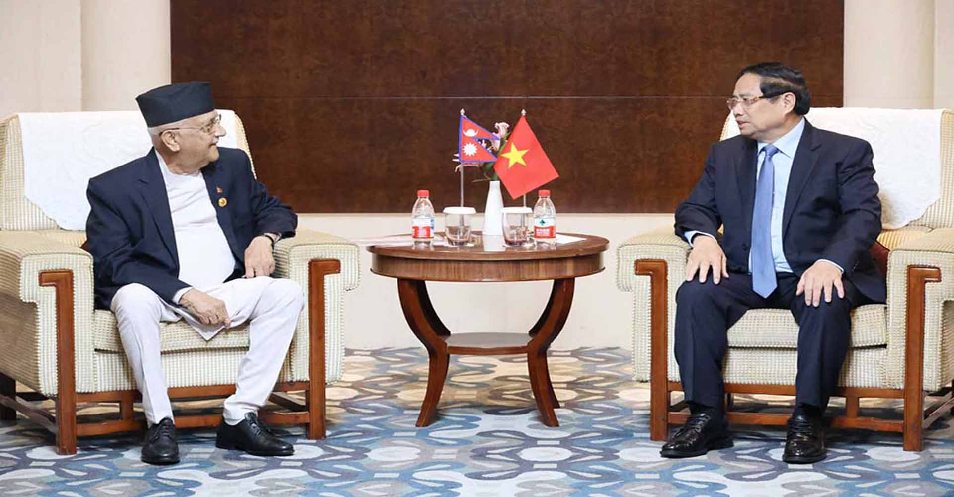 थप पढ्नुहोस्थियानजिन (चीन), १५ भदौ : प्रधानमन्त्री केपी शर्मा ओलीले भियतनामका प्रधानमन्त्री फाम मिन चिङसँग भेटवार्ता गर्नुभएको छ । शाङ्घाई सहयोग सङ्गठन