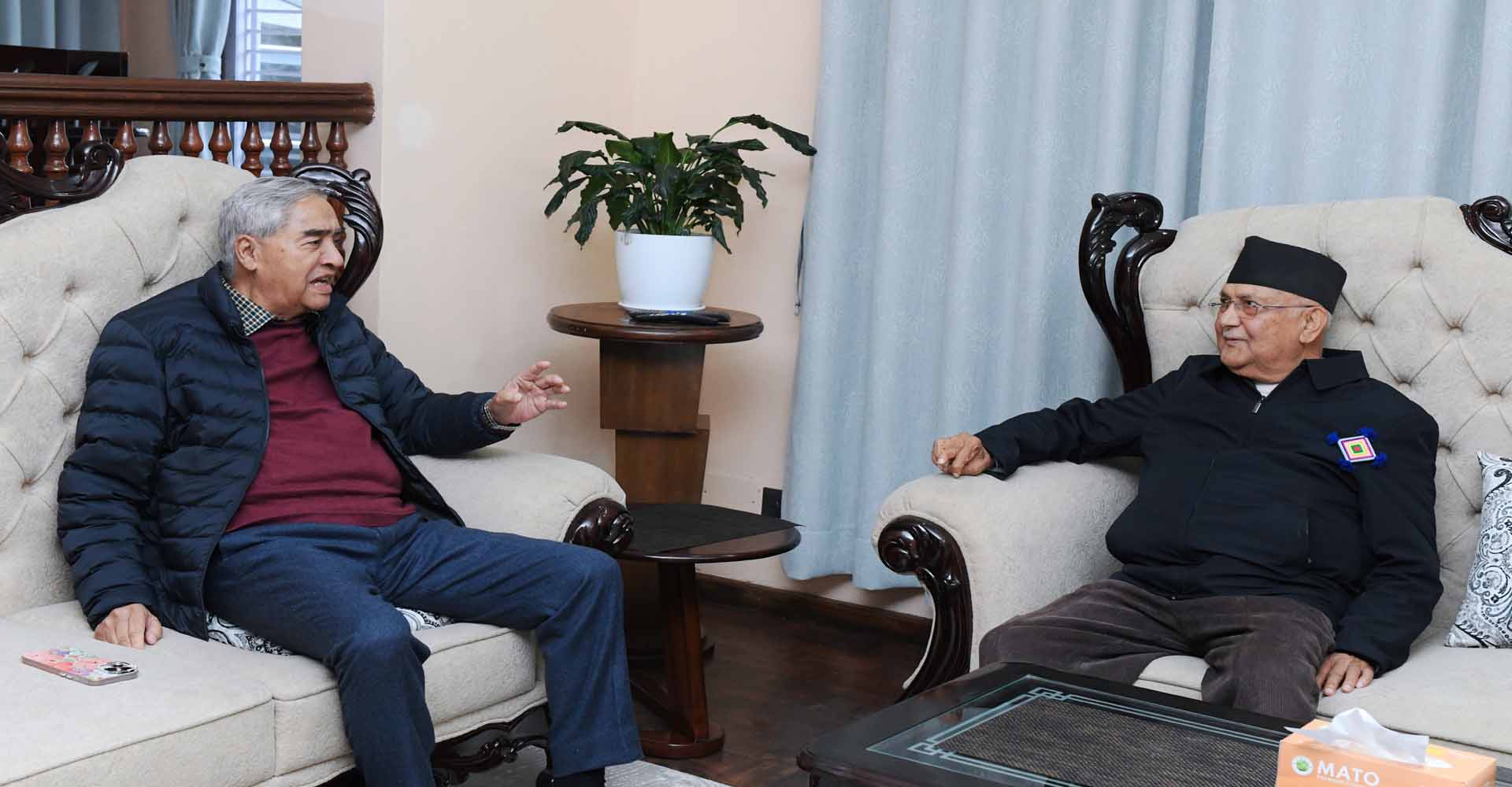 थप पढ्नुहोस्काठमाडौँ, पुस ७ गते । नेपाली कांग्रेसका सभापति शेरबहादुर देउवा र एमाले अध्यक्ष केपी शर्मा ओलीबीच भेटवार्ता भएको छ ।