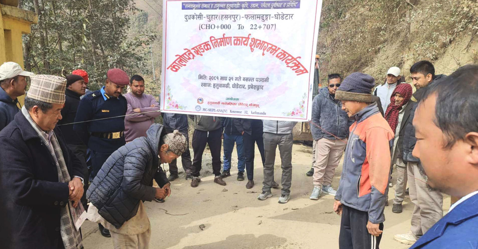 टक्सार (भोजपुर), २१ माघ : दुधकोशी चुहार–फलाम–ढुङ्गा–घोरेटार सडक स्तरोन्नति सुरु गरिएको छ । उक्त सडक निर्माणको जिम्मा एमसि–एसईआइपिएल–एनसी जेभी, काठमाडौँले