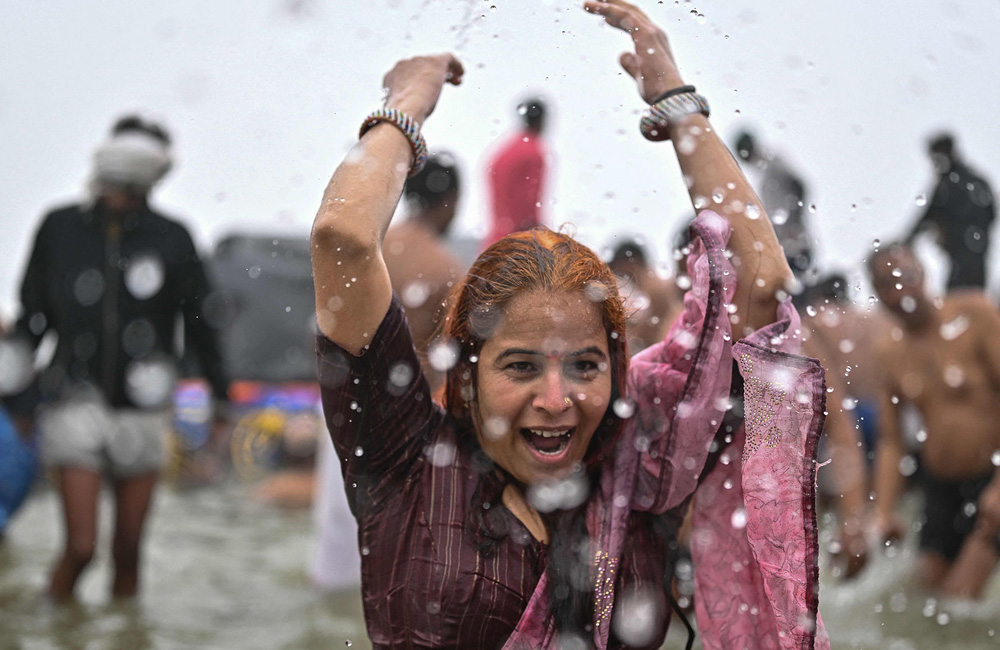प्रयागराज (भारत), ३० माघः यमुना र गङ्गा नदी मिसिएको दोभानमा स्नान गर्न पाउँदाको खुसी भक्तजनको मुहारमा प्रष्ट देखिन्छ । टाढाटाढाबाट