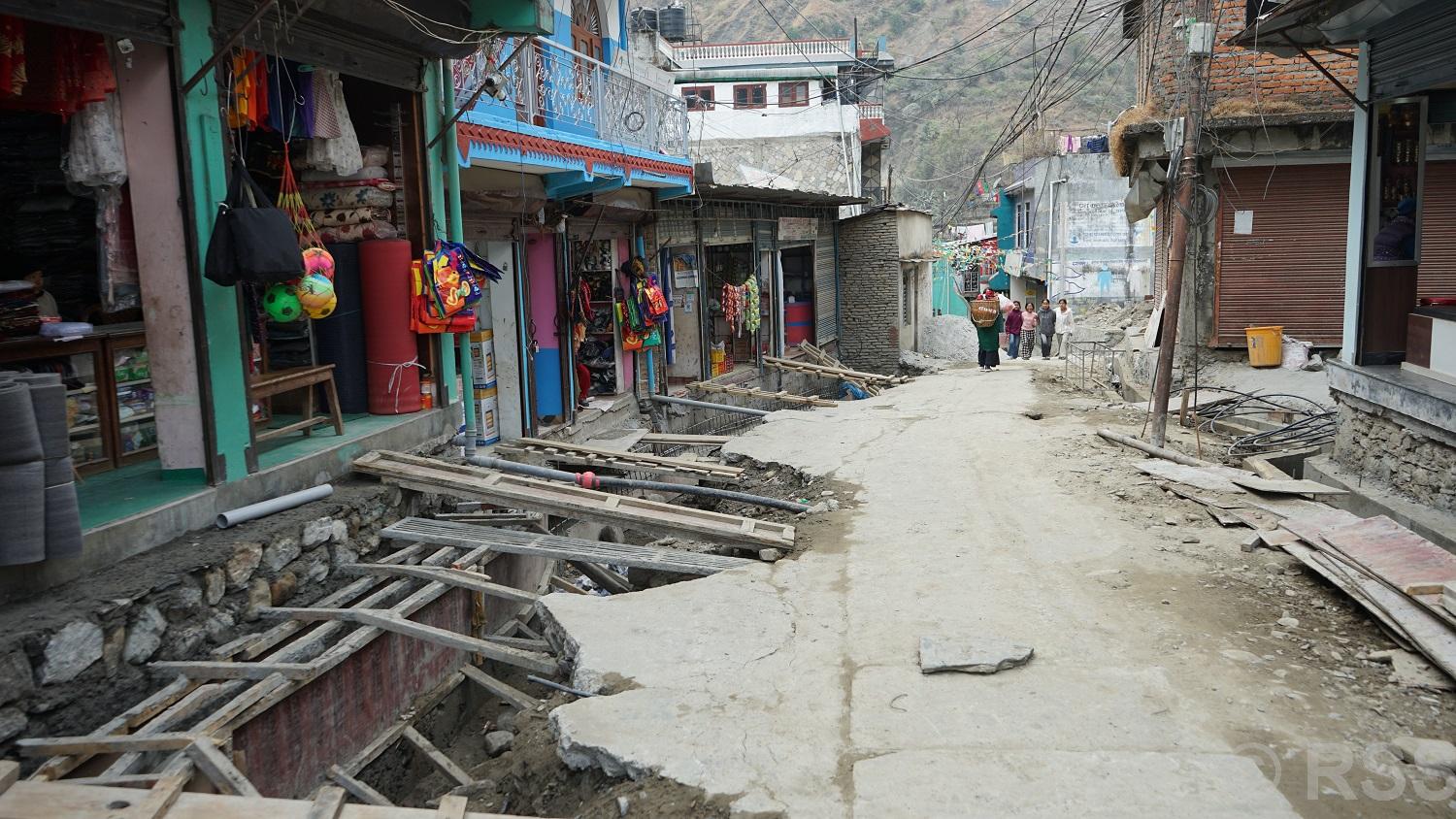 म्याग्दी, ११ वैशाखः मालिका गाउँपालिका–६ दरवाङका बासिन्दाले आफैँ घरका पेटी र विभिन्न प्रयोजनका निम्ति बनाइएका टहरा भत्काएर सडक विस्तार गरेका