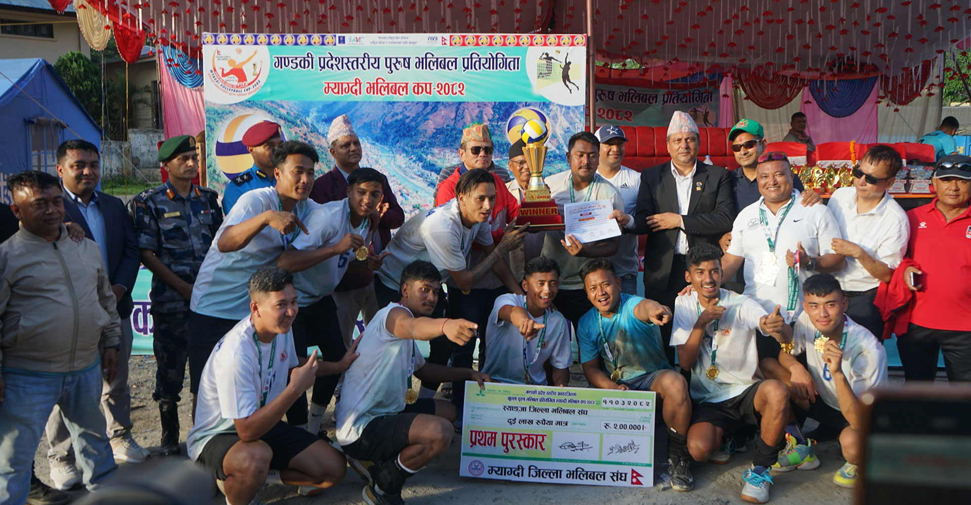 थप पढ्नुहोस्म्याग्दी, ११ असार : आयोजकलाई घरेलु मैदानमा पराजित गर्दै स्याङ्जा जिल्ला खेलकुद विकास समिति रु दुई लाख पुरस्कार राशिको गण्डकी