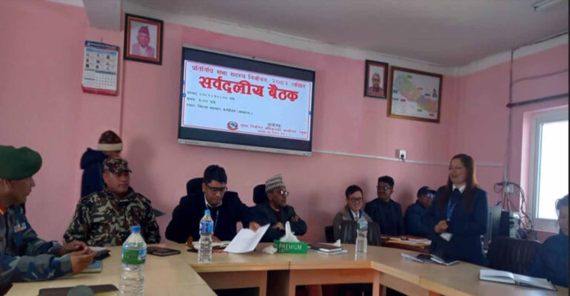 थप पढ्नुहोस्रसुवा, माघ २२ गते । प्रतिनिधिसभा सदस्य निर्वाचनलाई भयरहित, निष्पक्ष र शान्तिपूर्ण ढङ्गले सम्पन्न गर्ने सन्दर्भमा यहाँ सर्वदलीय बैठक भएको