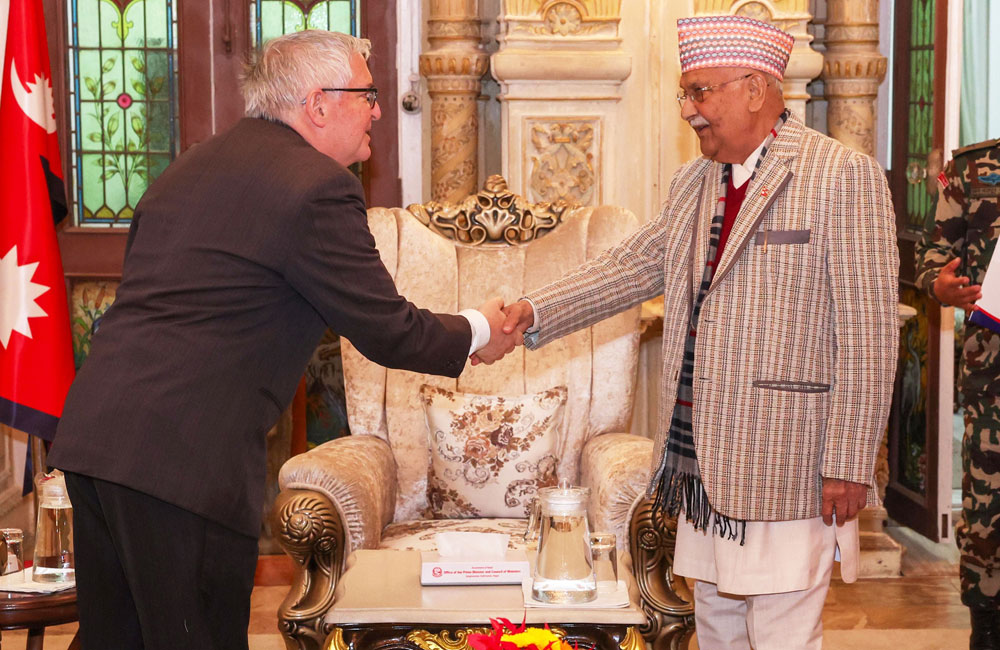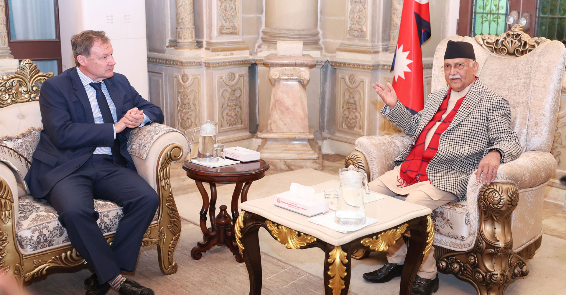 थप पढ्नुहोस्काठमाडौँ, ८ माघ : प्रधानमन्त्री केपी शर्मा ओलीसँग नेपालका लागि संयुक्त अधिराज्य बेलायतका राजदूत रोब फेनले आज शिष्टाचार भेट गर्नुभएको