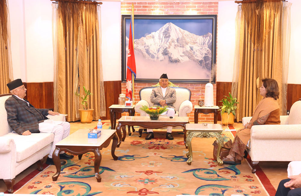 चीन भ्रमणबारे जानकारी गराउन राष्ट्रपति पौडेलसँग प्रधानमन्त्री ओलीको भेट