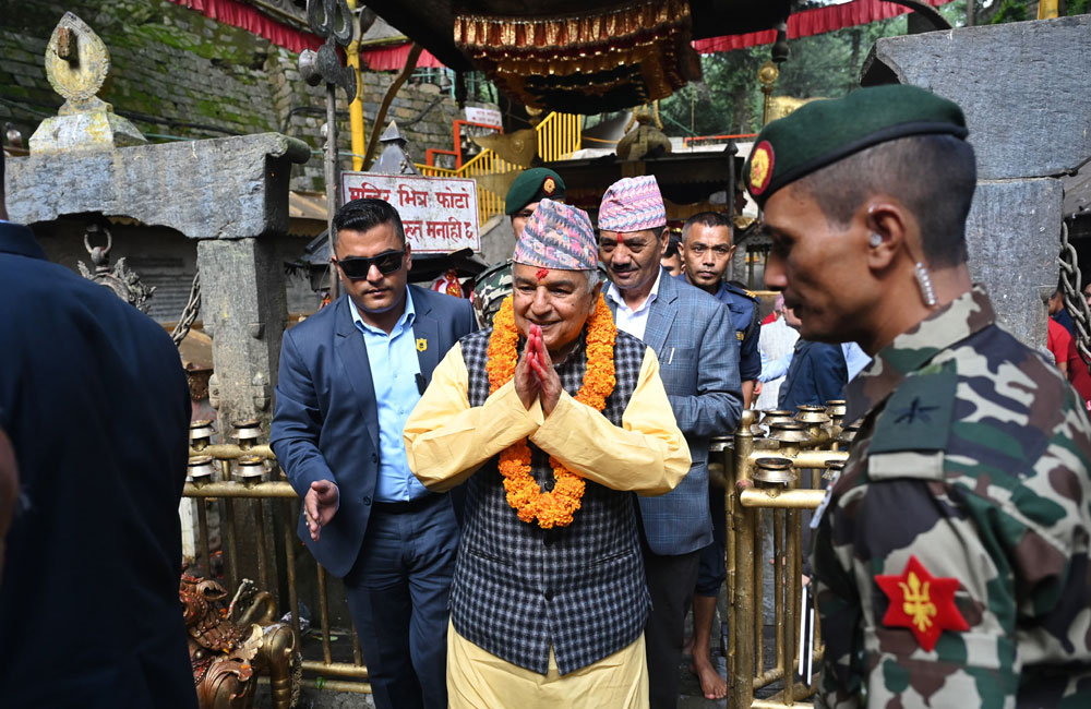 थप पढ्नुहोस्२१ असोज, काठमाडौं । राष्ट्रपति रामचन्द्र पौडेल प्रथम महिला सबिता पौडेलसहित बडादसैँको अवसरमा सोमबार बिहान दक्षिणकाली मन्दिर पुगेर दक्षिणकाली माताको