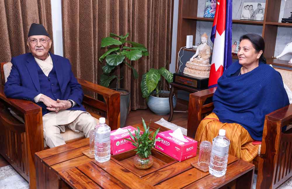 थप पढ्नुहोस्काठमाडौँ, १८ पुसः प्रधानमन्त्री केपी शर्मा ओली र पूर्वराष्ट्रपति विद्यादेवी भण्डारीबीच आज भेटघाट भएको छ । प्रधानमन्त्री ओली पूर्वराष्ट्रपति भण्डारीलाई