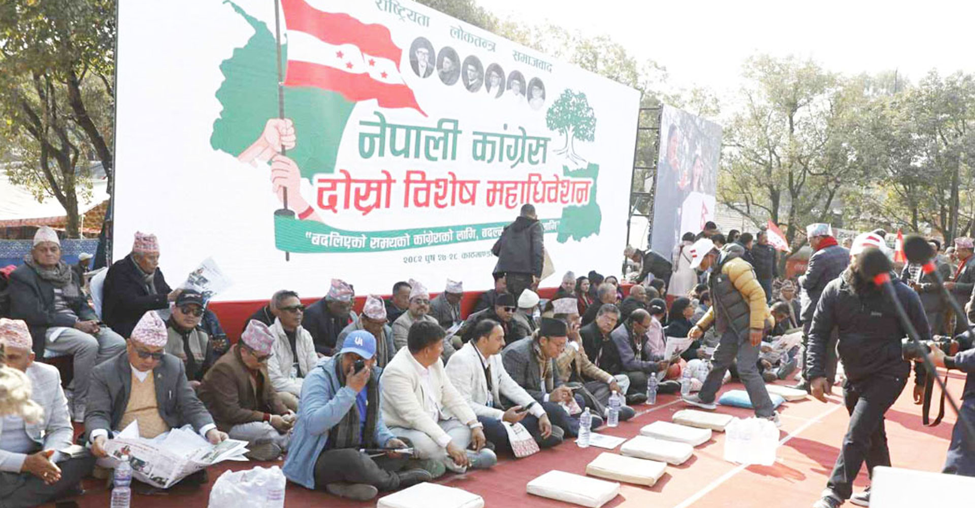 थप पढ्नुहोस्काठमाडौं, पुस २७ गते । नेपाली कांग्रेसका महामन्त्रीद्वयको अगुवाइमा आजदेखि काठमाडौंको भृकुटीमण्डपमा भइरहेको विशेष महाधिवेशनमा भाग लिन आउनुहुने महाधिवेशन प्रतिनिधिहरूको