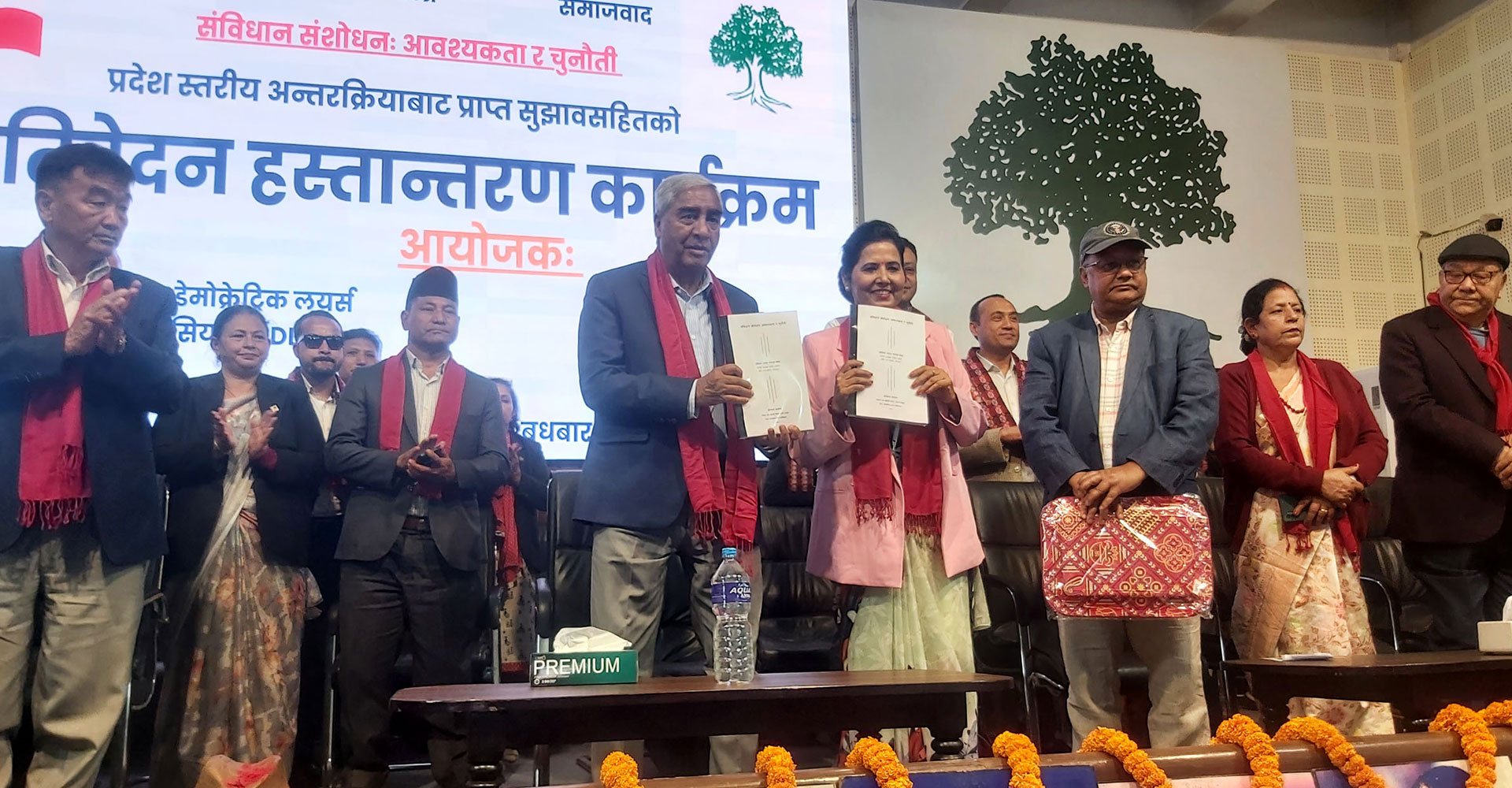 थप पढ्नुहोस्पाटन (ललितपुर), ६ चैत : नेपाली कांग्रेसका सभापति एवं पूर्वप्रधानमन्त्री शेरबहादुर देउवाले समावेशी समानुपातिक आधारमा बनेको वर्तमान संविधानलाई बचाइराख्नुपर्ने बताउनुभएको