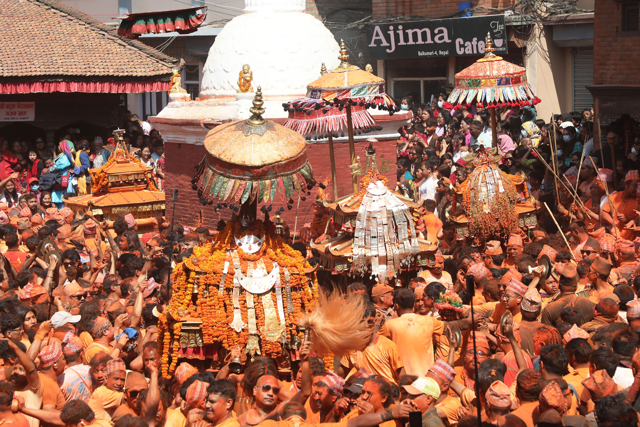 भादगाउँ, ४ वैशाखः बिस्का जात्राको आठौँ दिन आज भक्तपुरमा द्यो स्वगं पूजा (सगुन जात्रा) धुमधामका साथ मनाएको छ । आज
