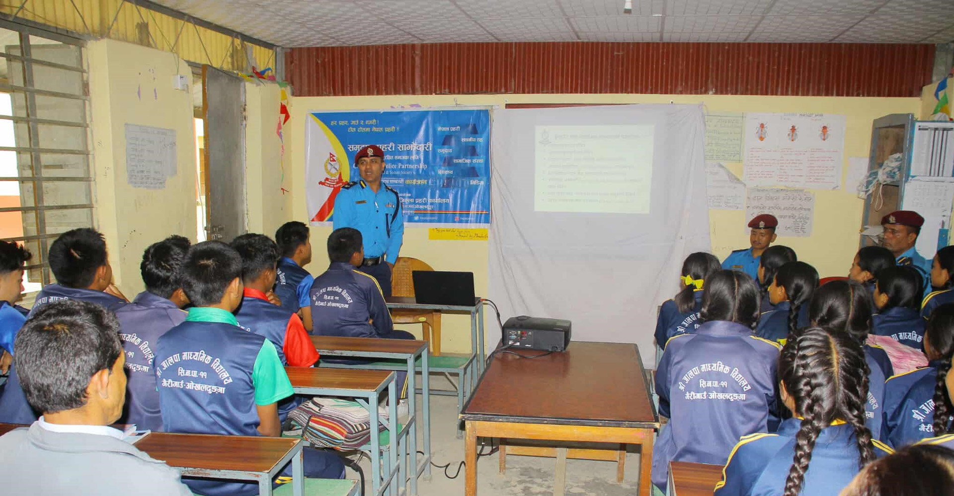 ‘साइबर’ कानुनबारे गाउँका विद्यार्थीलाई पढाउँदै प्रहरी