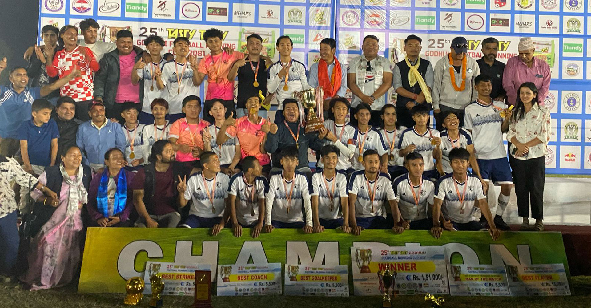 थप पढ्नुहोस्धरान (सुनसरी), २२ चैत : पच्चीसौँ टेष्टीटेष्टी गोधुली रनिङ कप फुटबल प्रतियोगिताको उपाधि धरान–१४ ले जितेको छ । गए राति